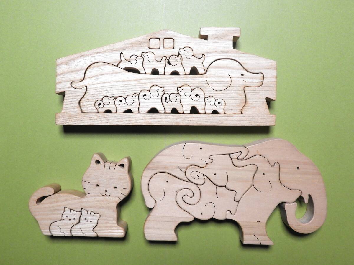 ◆木製パズル 動物バズル 3点 知育玩具 木のおもちゃ いぬ ねこ ぞう◆