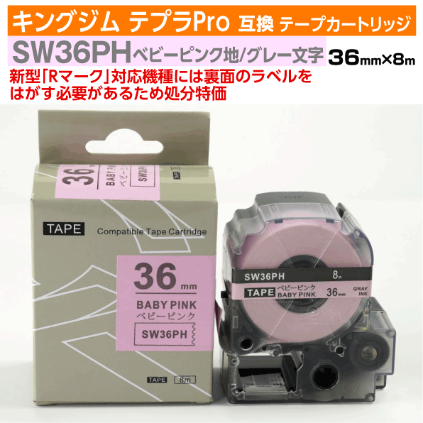 【数量限定セール】キングジム テプラPro用 互換 テープカートリッジ 旧型 SW36PH〔ソフトカラー〕36mm幅 ベビーピンク地 グレー文字