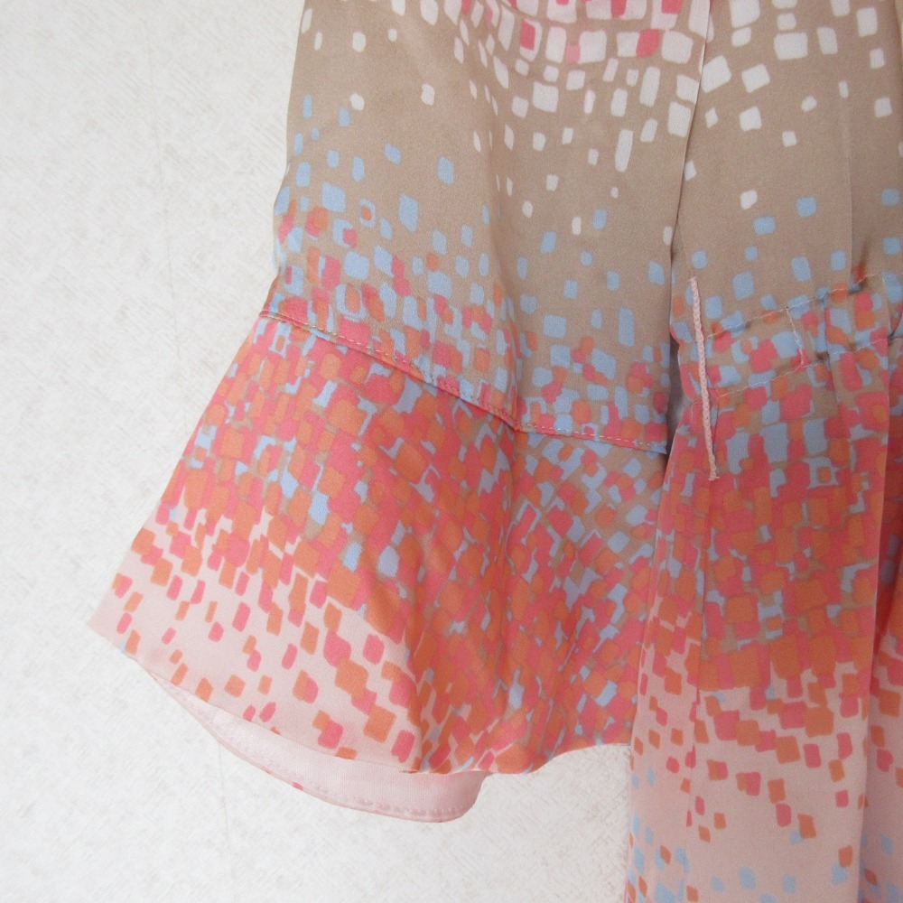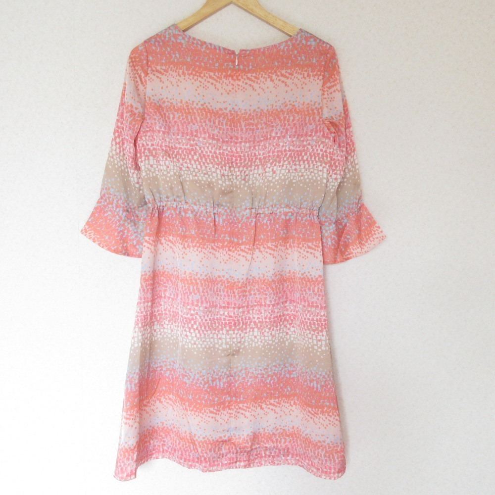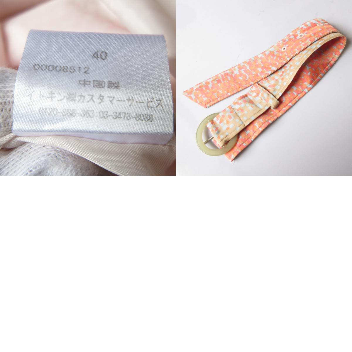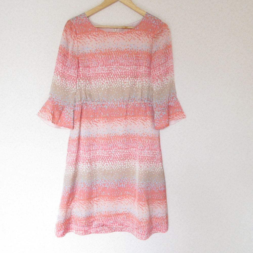 商品名:Courreges クレージュ プリント 総柄 七分袖 ひざ丈 ベルテッド ワンピース 40 ピンク系