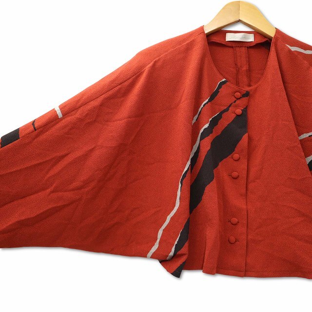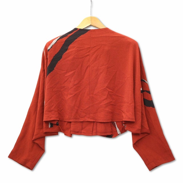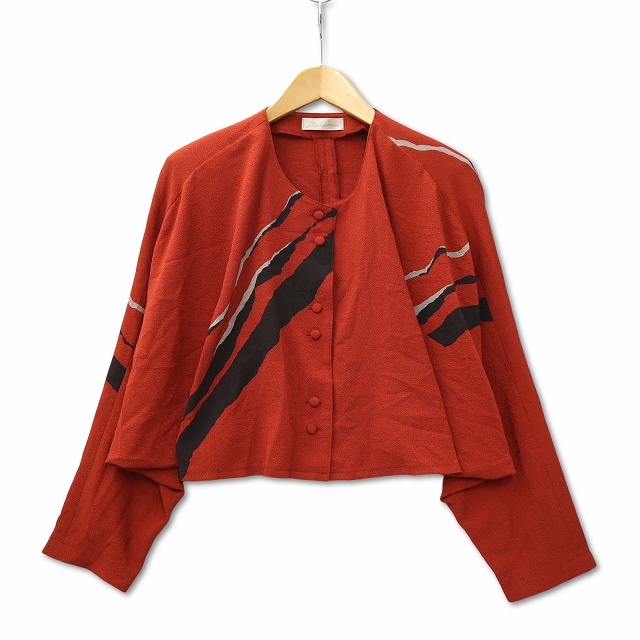 ヒトシタムラ Hitoshi Tamura 詩仙堂 ショート丈 ちりめん ドルマン袖 ジャケット 朱赤 レディース