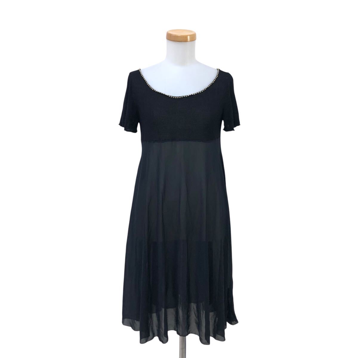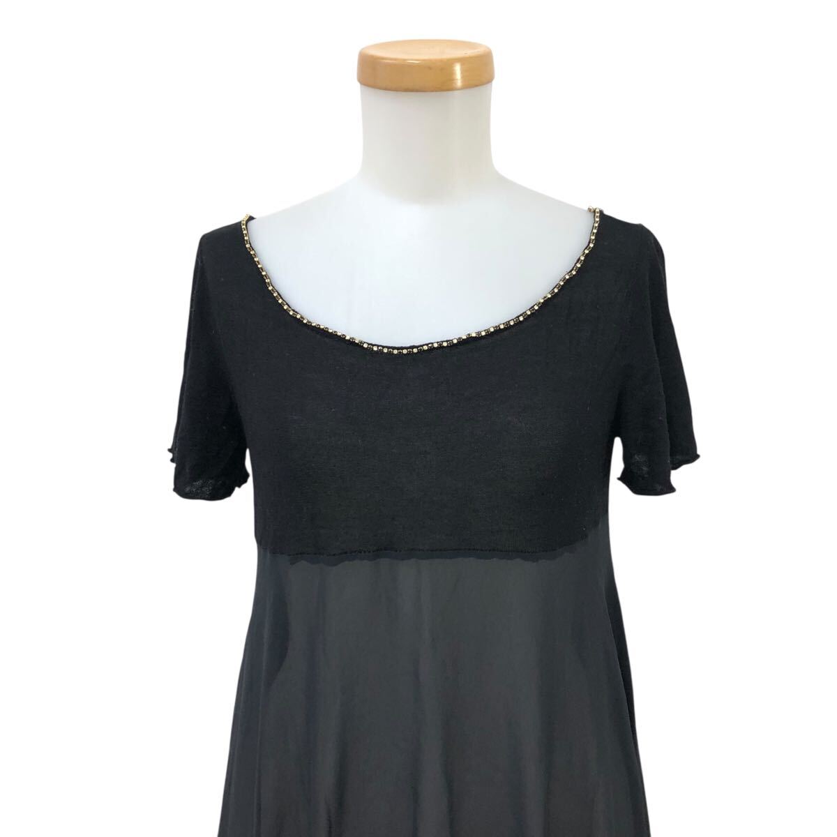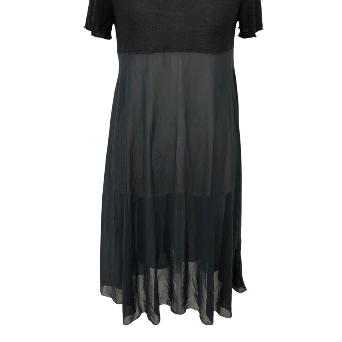 m629-13 Sybilla シビラ 半袖 ニット シフォン 切り替え ワンピース ワンピ 透け感 ラインストーン ブラック 黒 レディース M