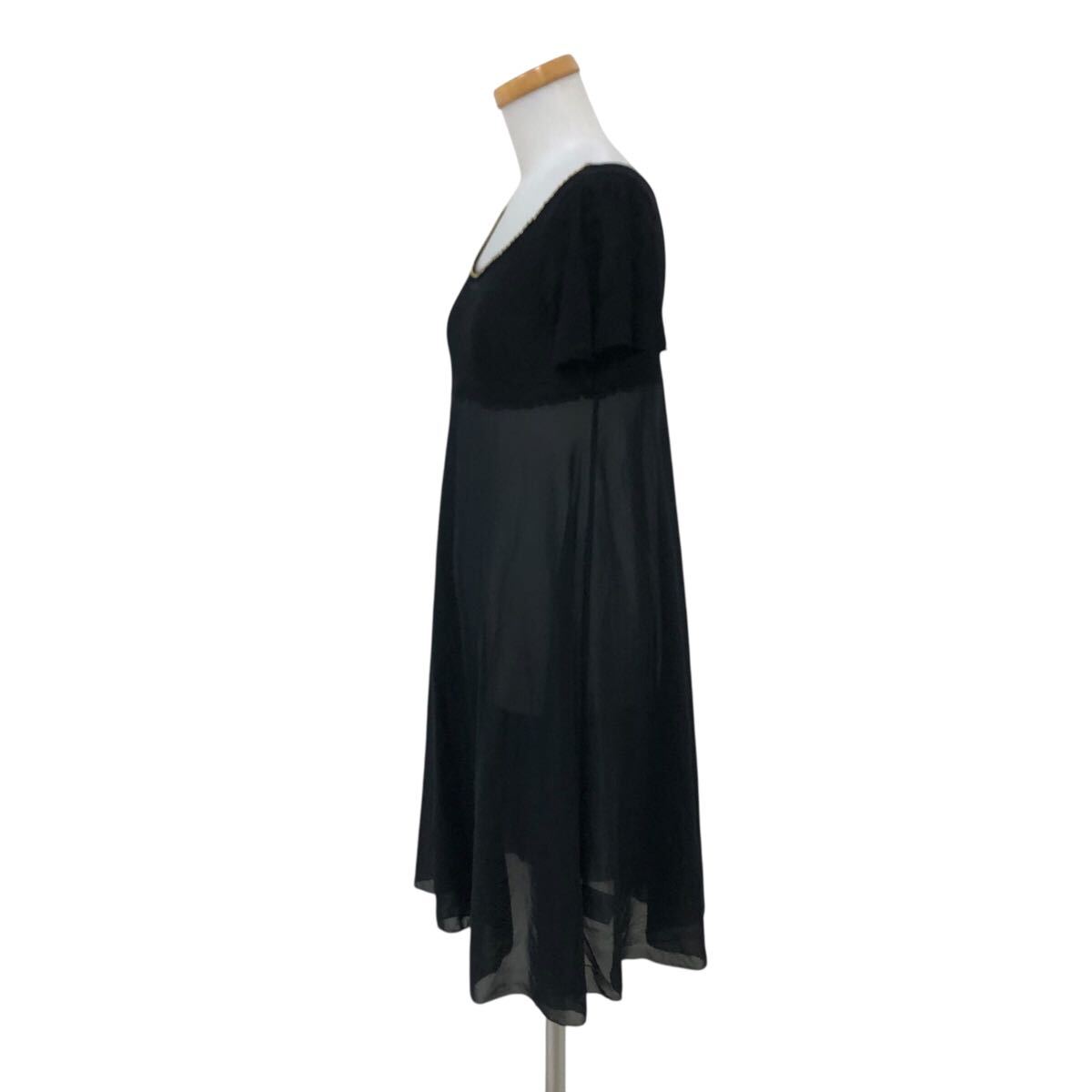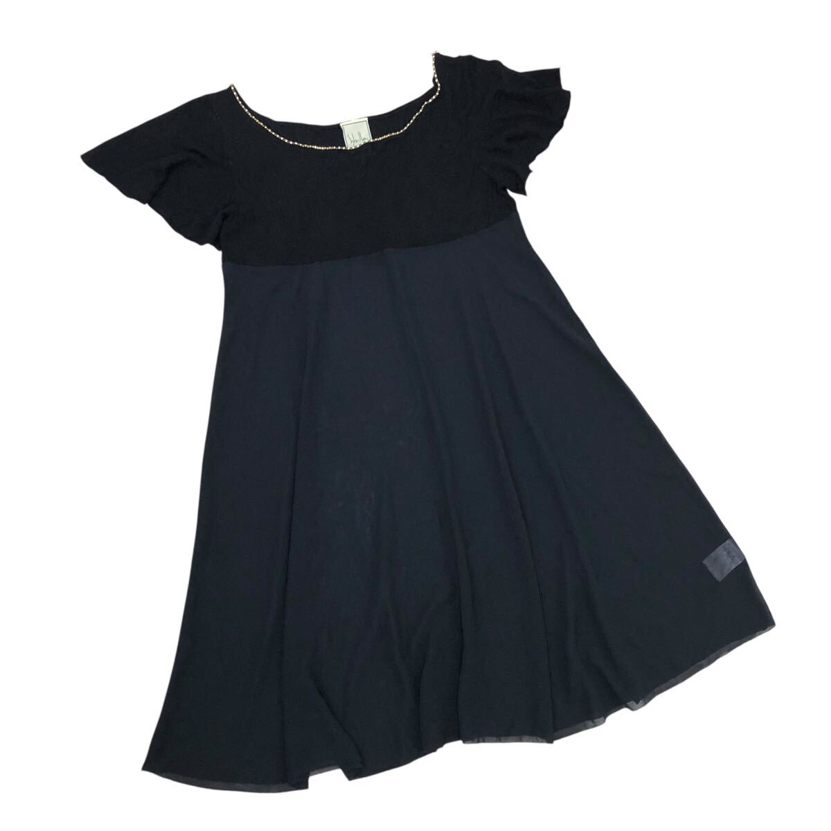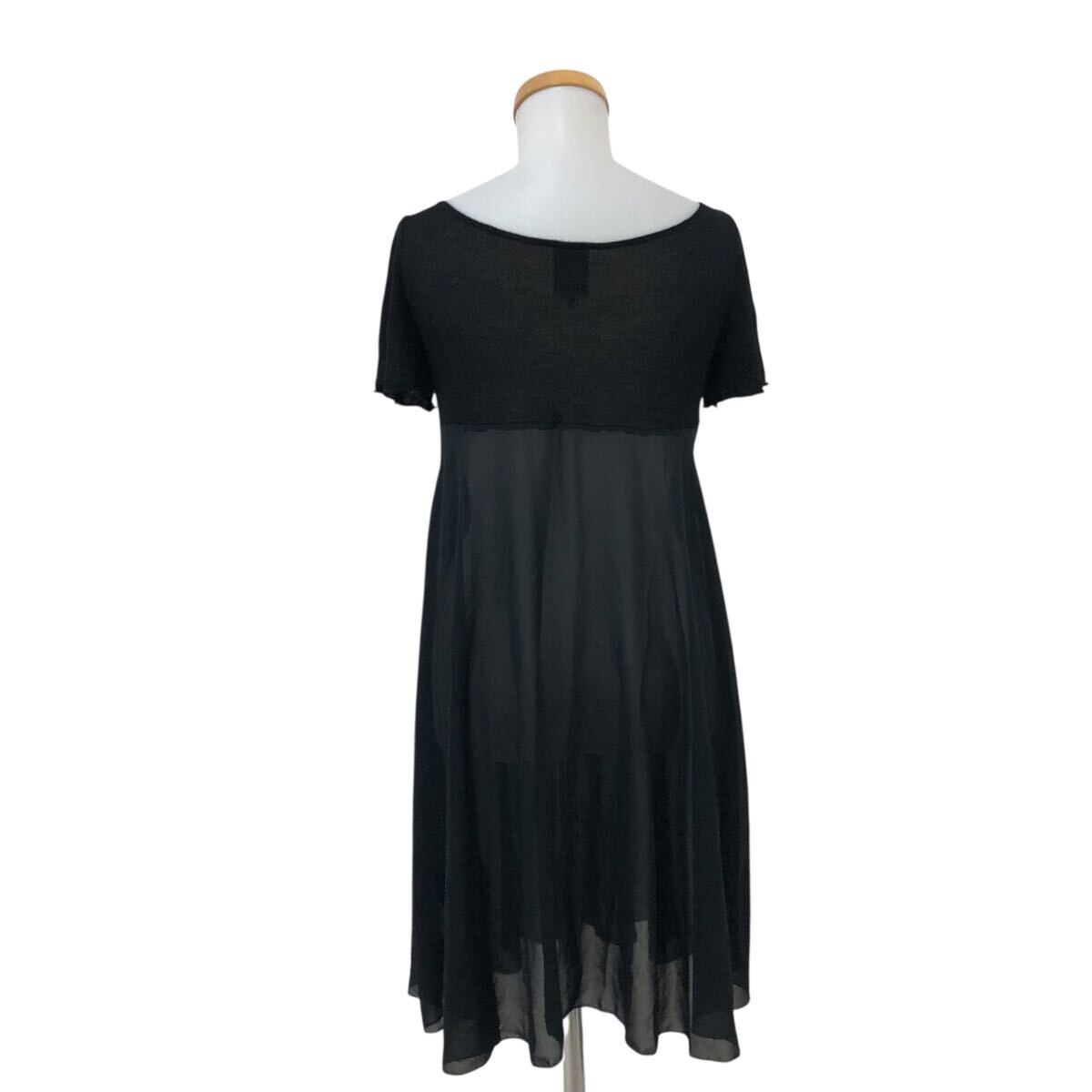m629-13 Sybilla シビラ 半袖 ニット シフォン 切り替え ワンピース ワンピ 透け感 ラインストーン ブラック 黒 レディース M