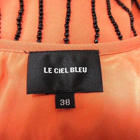 ルシェルブルー LE CIEL BLEU ワンピース Aライン ミニ ノースリーブ 総柄 38 オレンジ /RT レディース