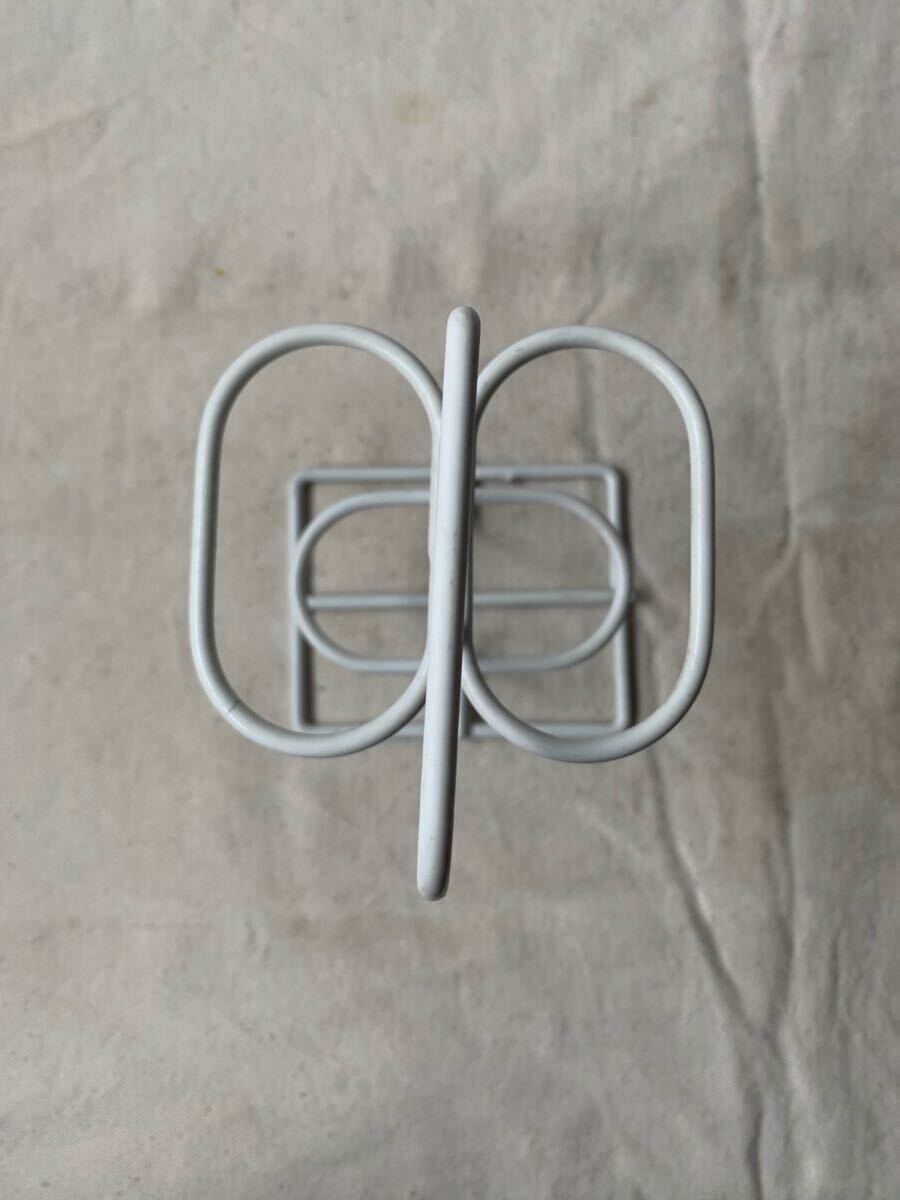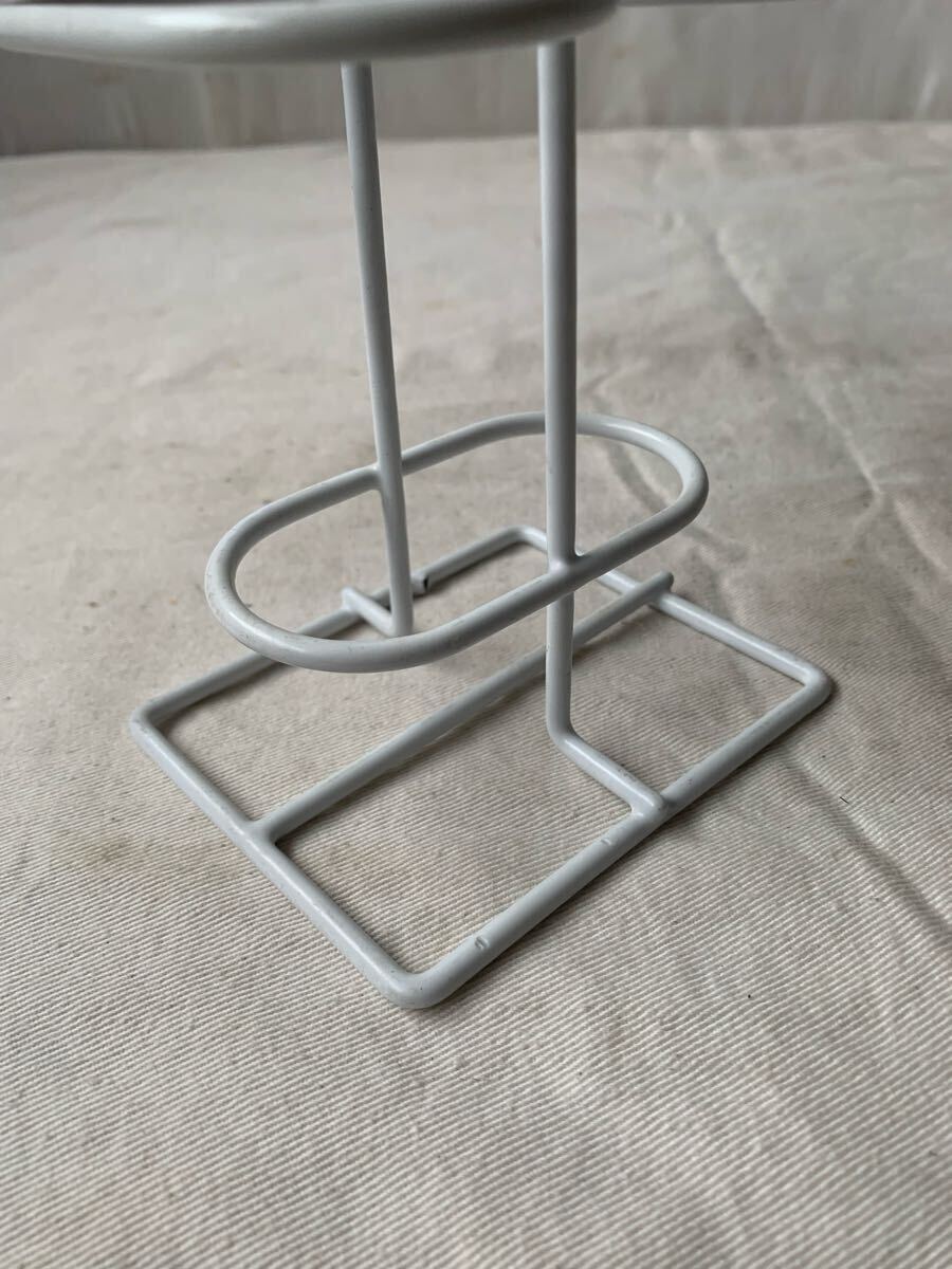 デザインが素敵な白いアイアン製スタンドです。お部屋のインテリアやお店のディスプレイ、イベント出店時の什器などに使って頂くと素敵だと思います。
