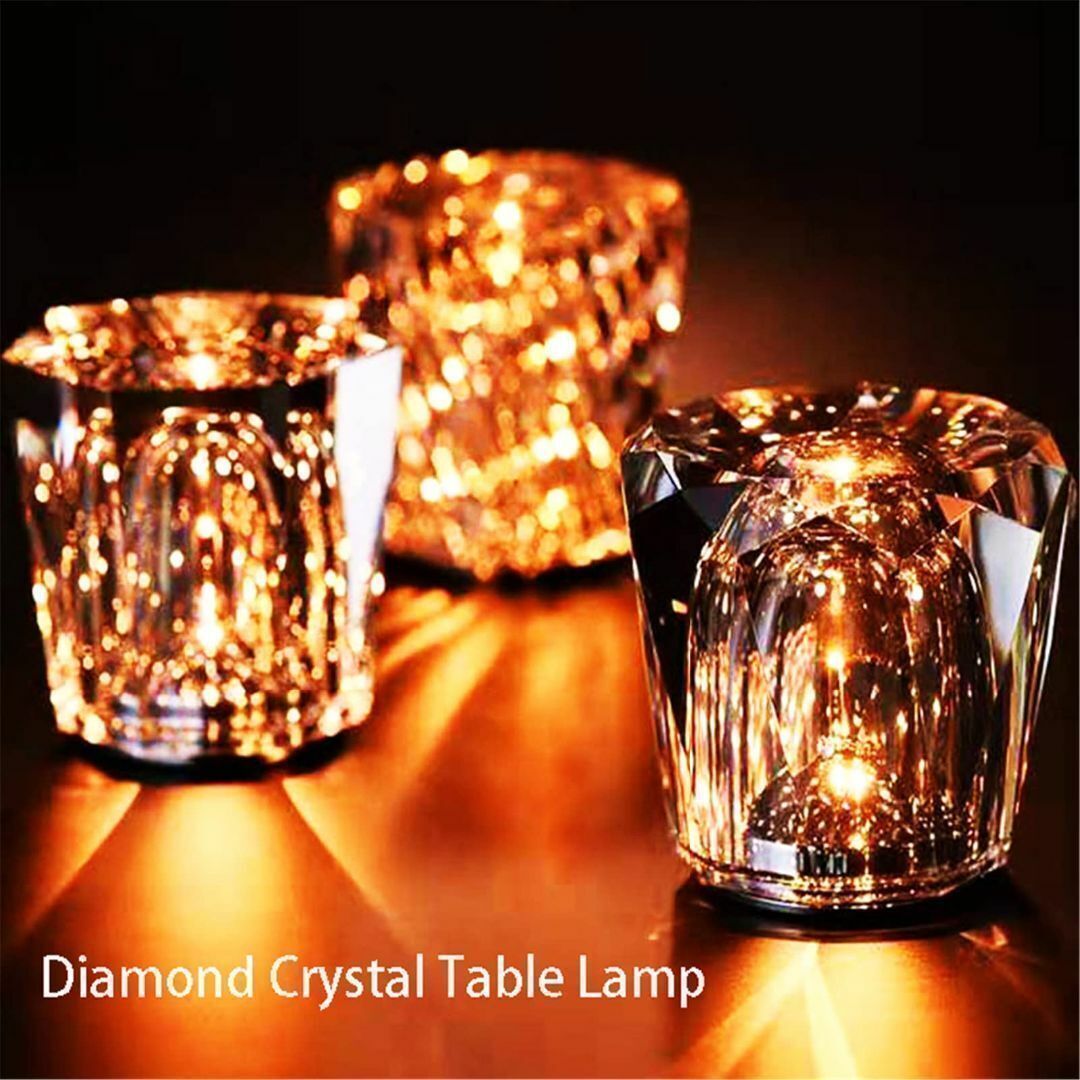 カットクリスタルランプ A USB充電 LED 3段階調光 コードレス テーブルランプ ナイトライト ベッドサイド 寝室 オブジェ 置物 おしゃれ