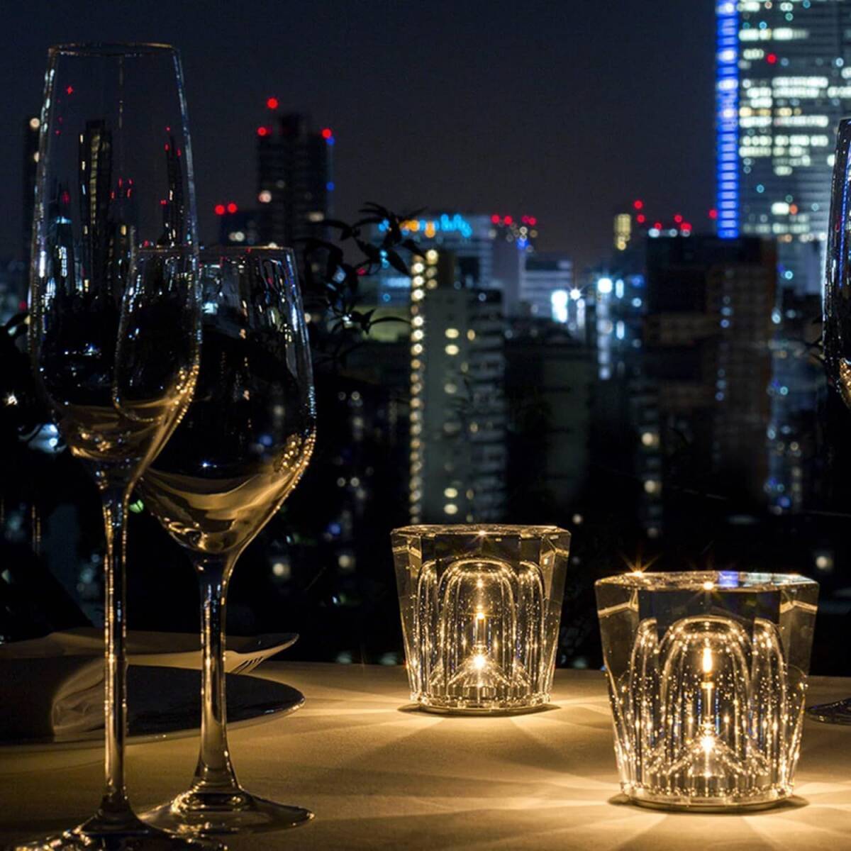 カットクリスタルの美しい光がお部屋を彩る、USB充電でお使いいただくLEDテーブルランプです。