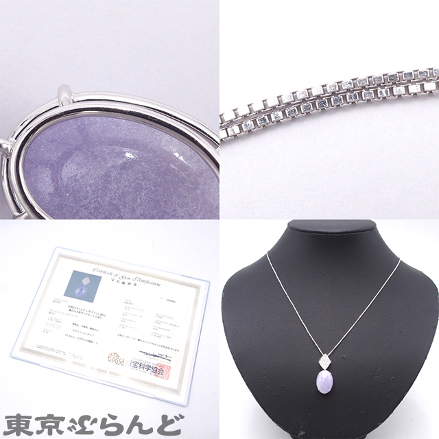 500467080 ノーブランド ラベンダージェダイト ダイヤモンド ネックレス ホワイトゴールド K18WG ラベンダー翡翠15.40ct ダイヤ0.27ct