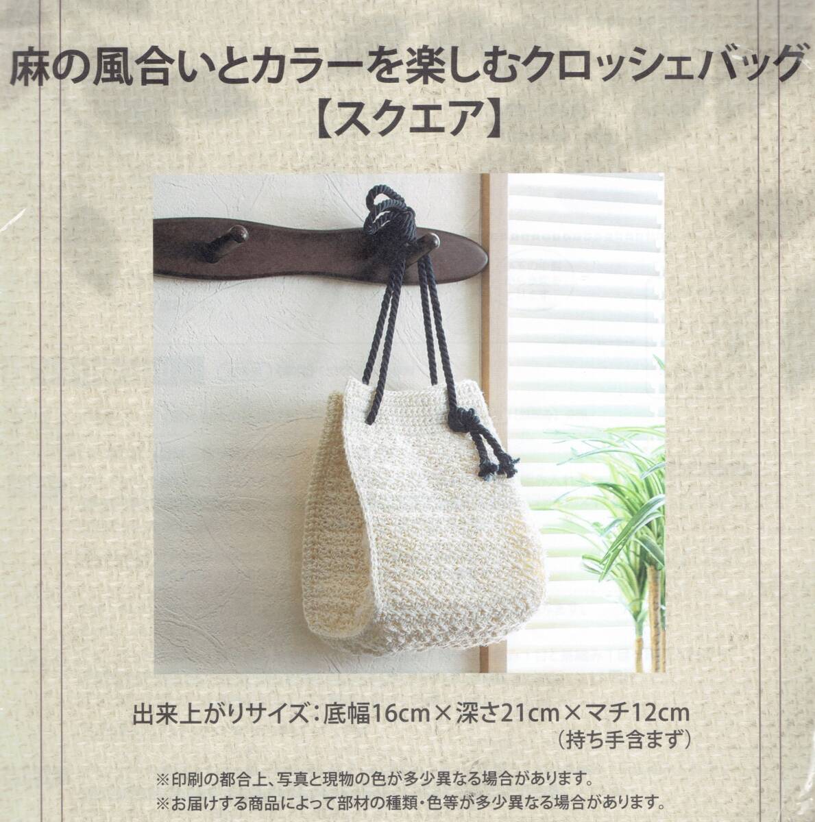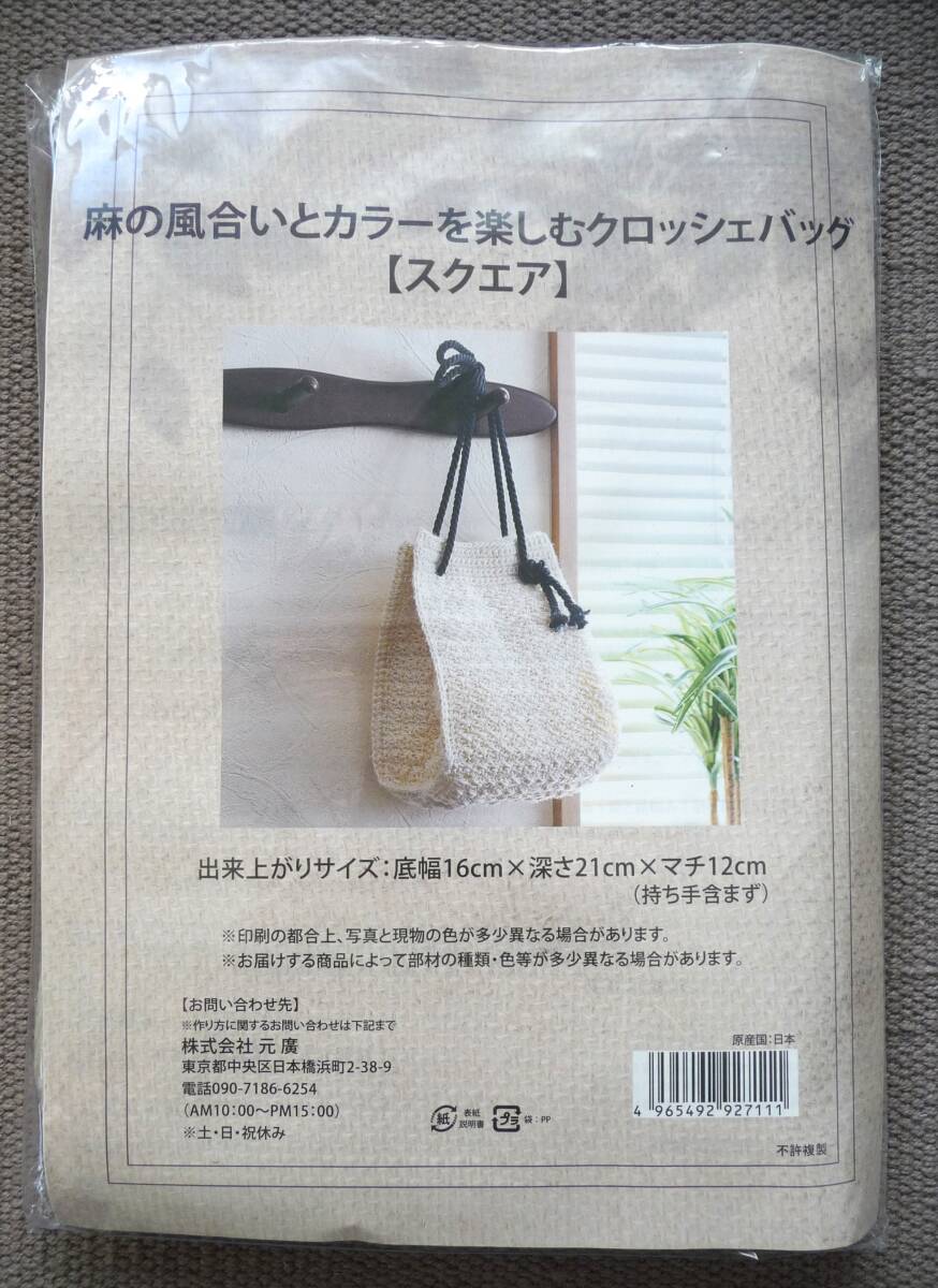 ◆麻の風合いとカラーを楽しむクロッシェバッグ◆キット◆スクエア◆かぎ針編み