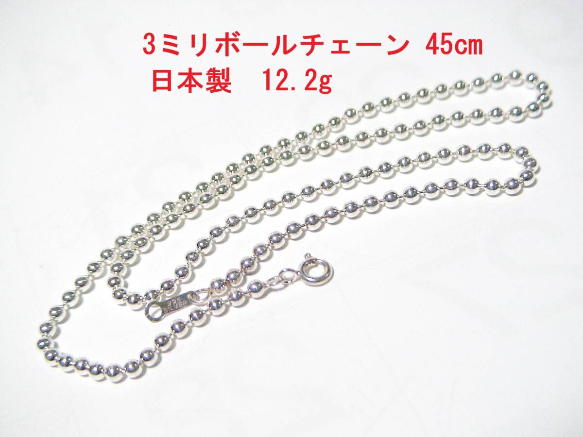 925シルバー製3mmボールチェーン45cm新品 日本製 12.2g。