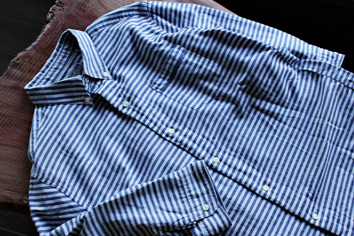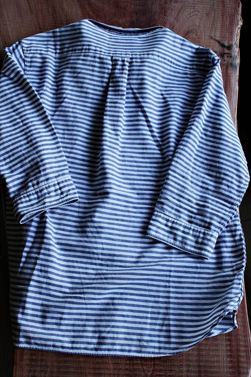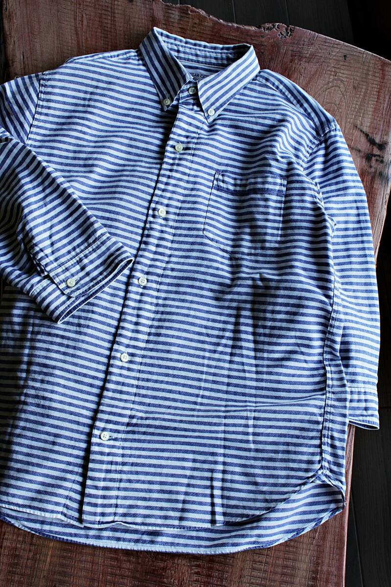 | [商品名] | ボーダー柄七分袖ボタンダウンシャツ美品 M WH×NV★素材と風合い★美品★ハリウッドランチマーケット★KATO |