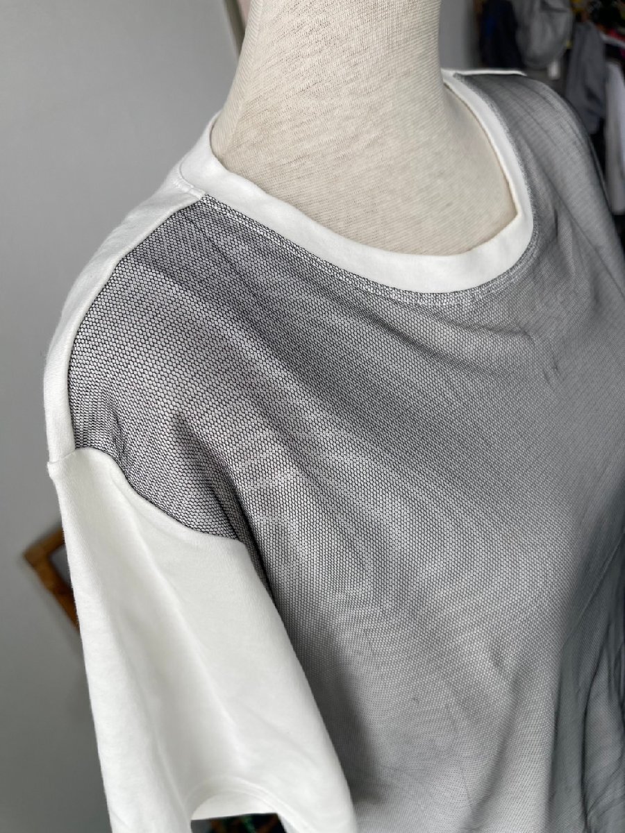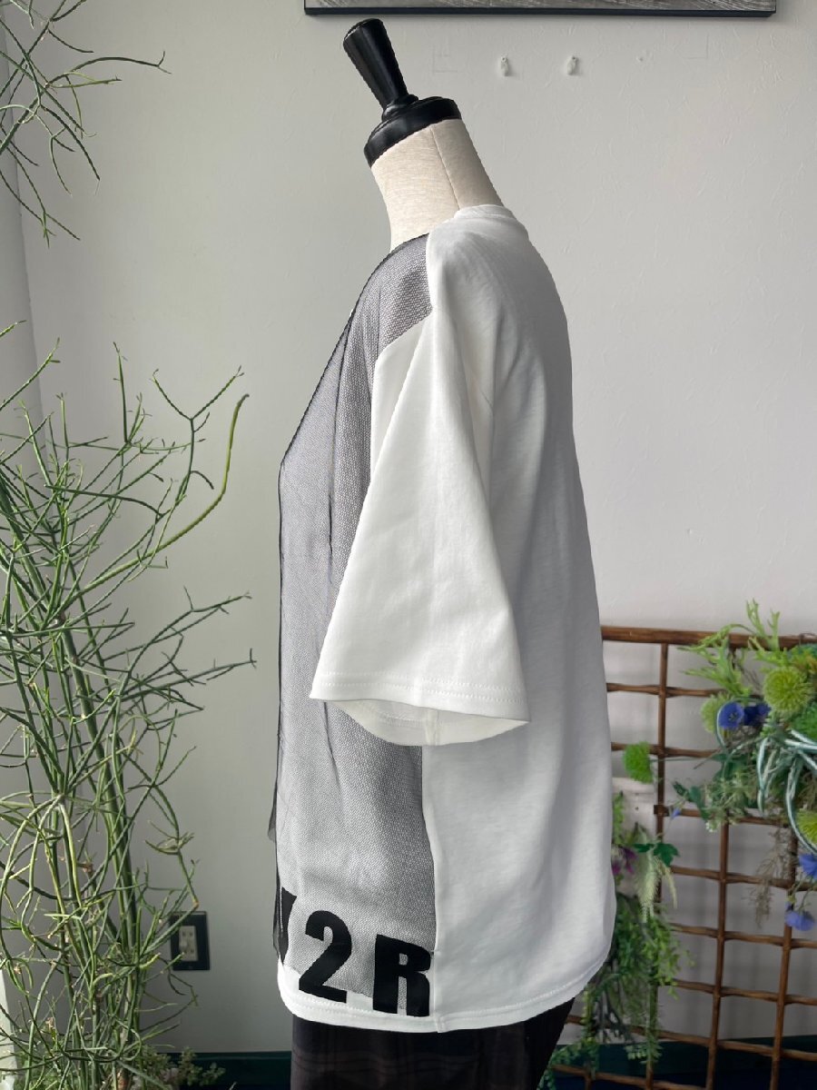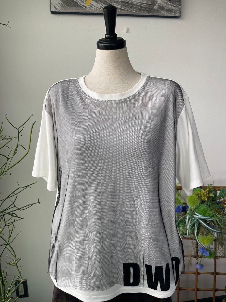 レディース カットソー 半袖 前メッシュ付き オシャレ 大人コーデ 個性的 コーディネート 美品