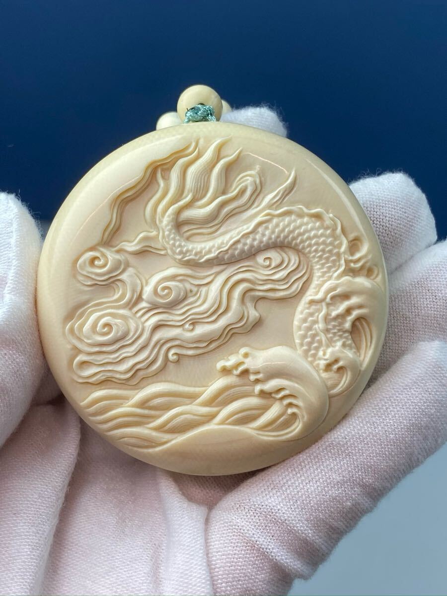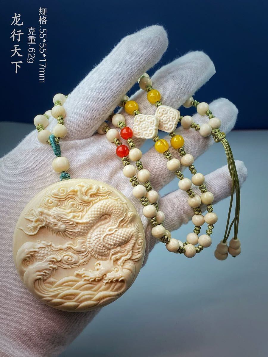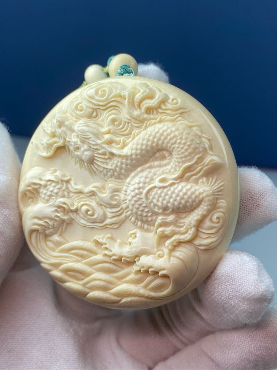 商品名:天然マンモス牙美しい手作り彫刻 龍行天下 ペンダント