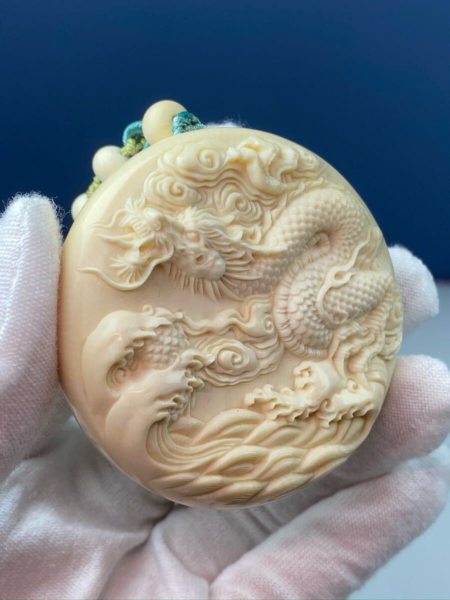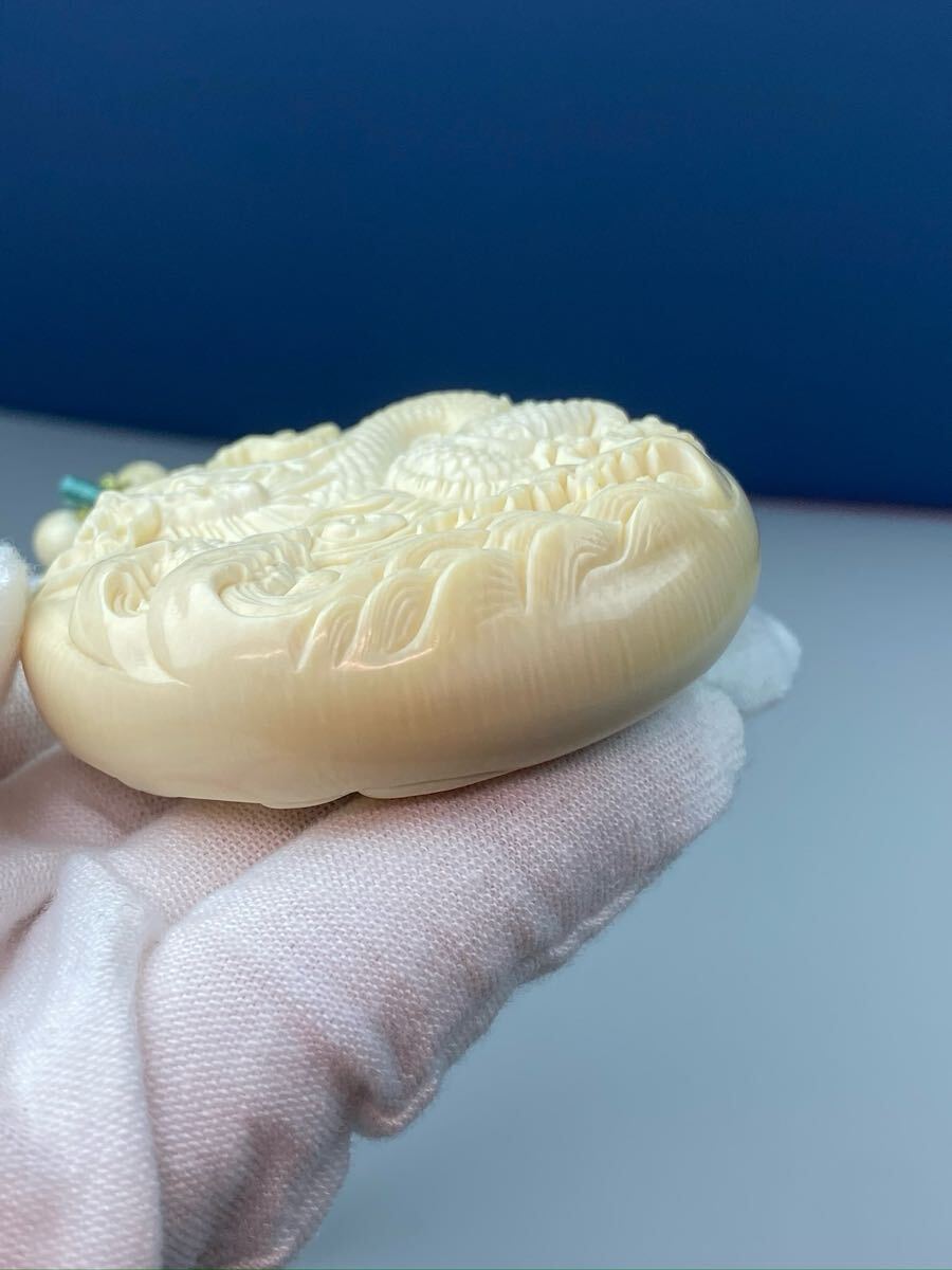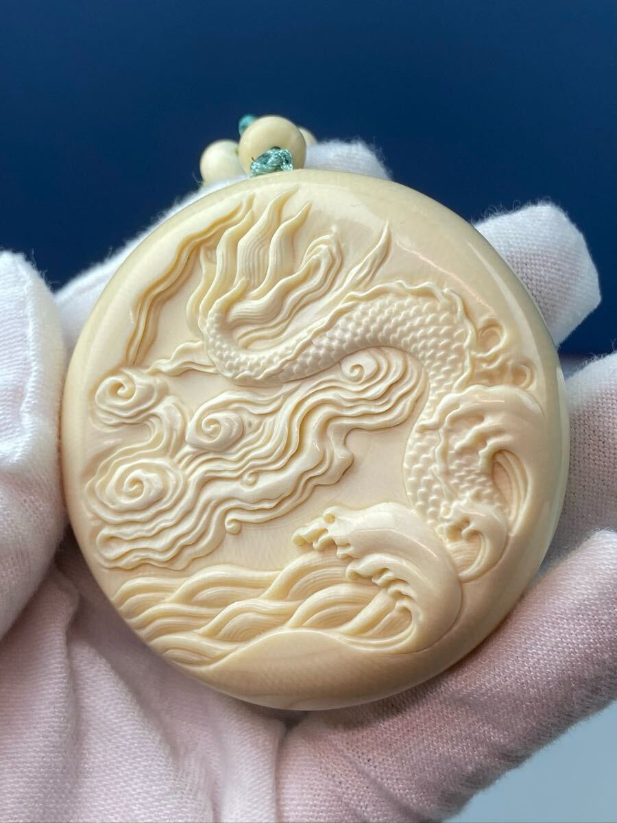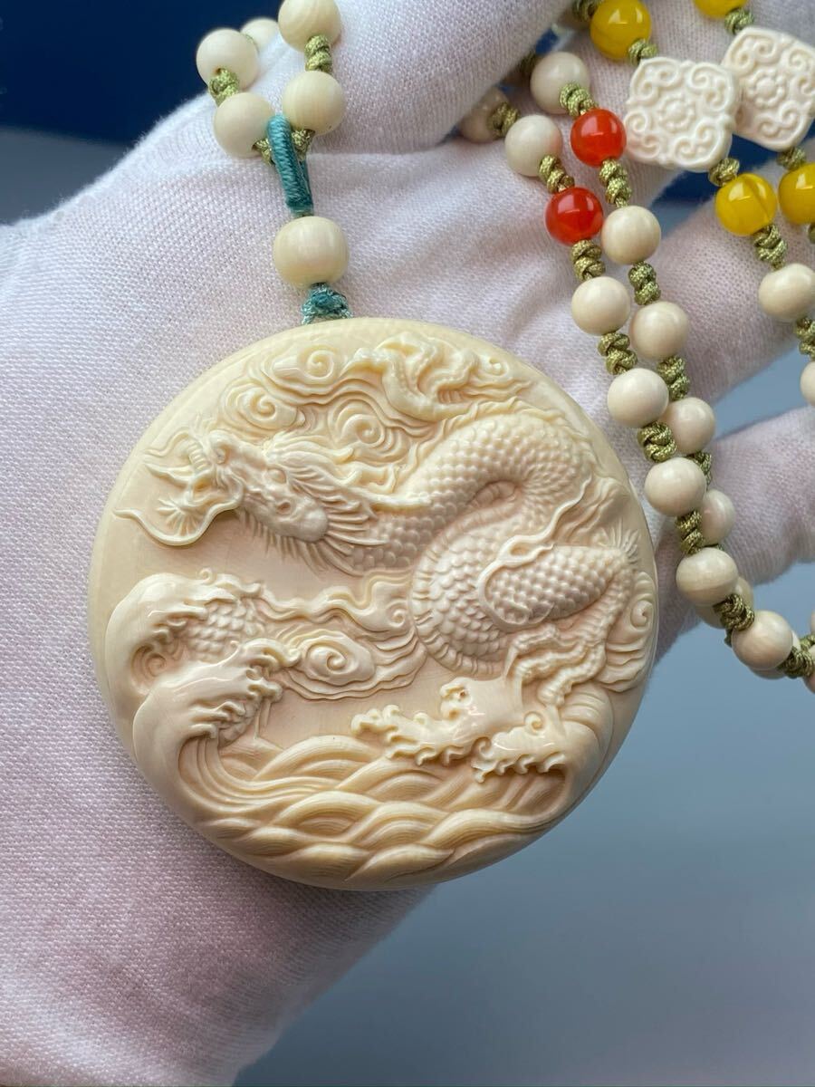 商品名:天然マンモス牙美しい手作り彫刻 龍行天下 ペンダント