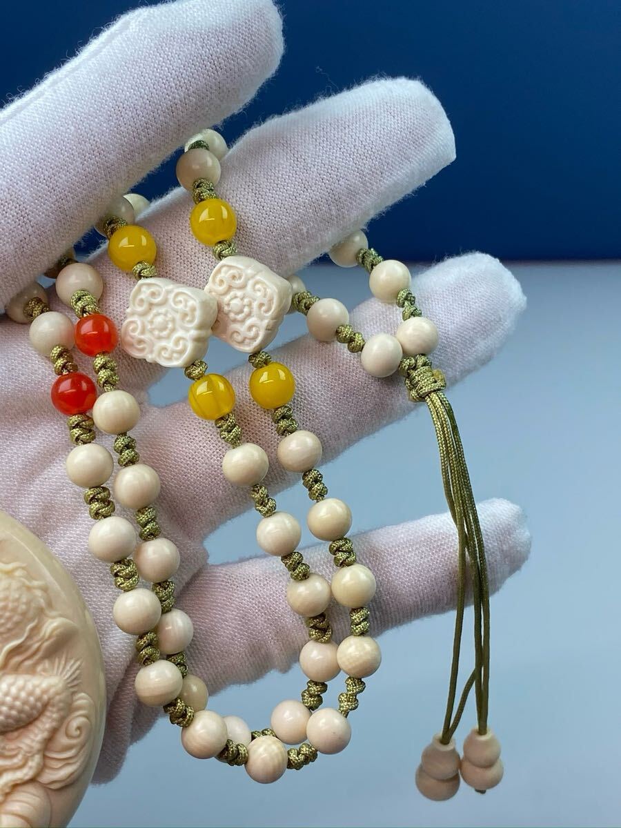 【龍行天下】ストラップ!龍札、寓意は邪悪を除く,鎮宅、富貴吉祥。満紋のゼリー材を厳選する、材質は潤い,工夫が細かく,牙質が黄潤い、満紋が鮮明で、立体的にふっくらしています、線が滑らかで、手作り札、両面が満工で彫刻,覇気がいっぱい。6mmの数珠を組み合わせる精巧なセット