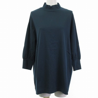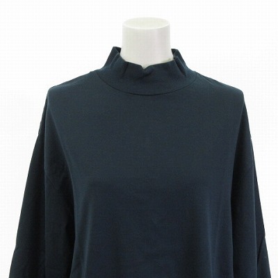未使用品 ロエフ LOEFF タグ付き ハイネック カットソー Tシャツ 7分袖 半端袖 緑系 ダークグリーン フリーサイズ レディース