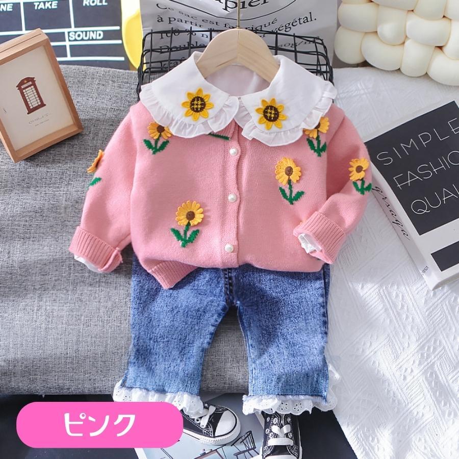 | 商品名 | 新品 送料無料 ピンク 110cm 3点セット ひまわり柄 カーディガン フリルレース付デニムパンツ ブラウス 上下セット キッズ服 ベビー服 女の子 |