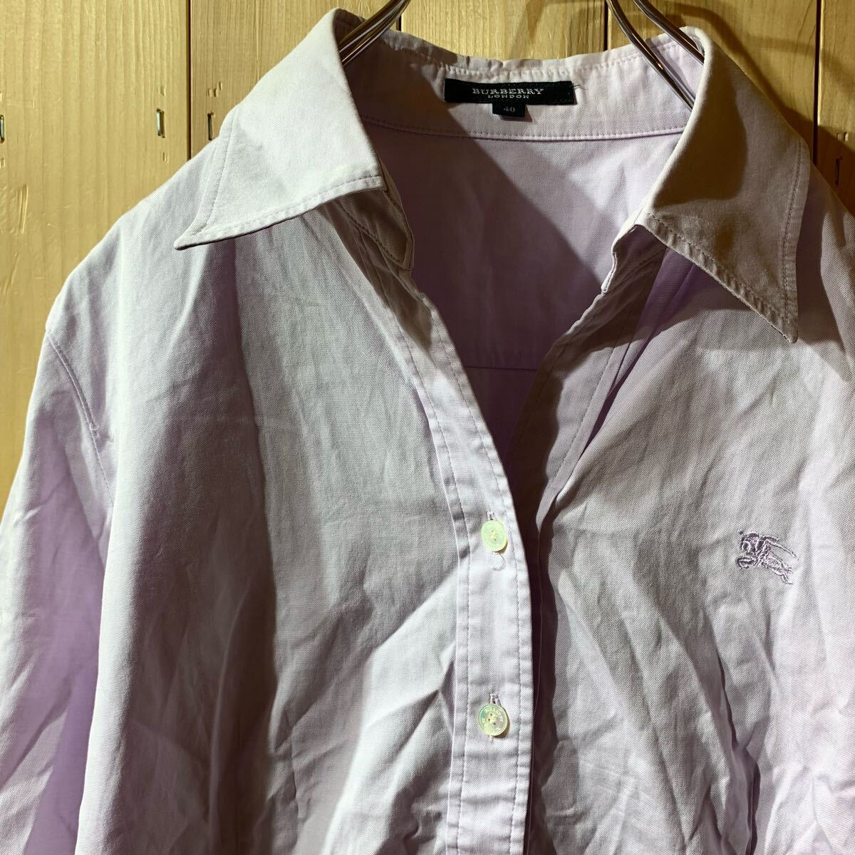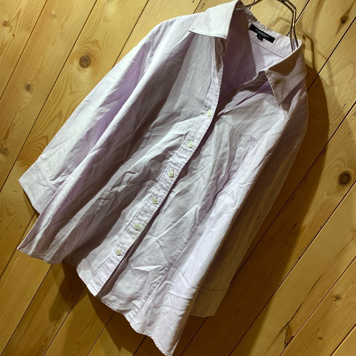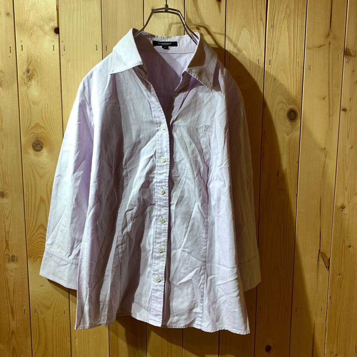 [YUK436]BURBERRY バーバリー 七分袖 シャツ ブラウス 紫 パープル 40
