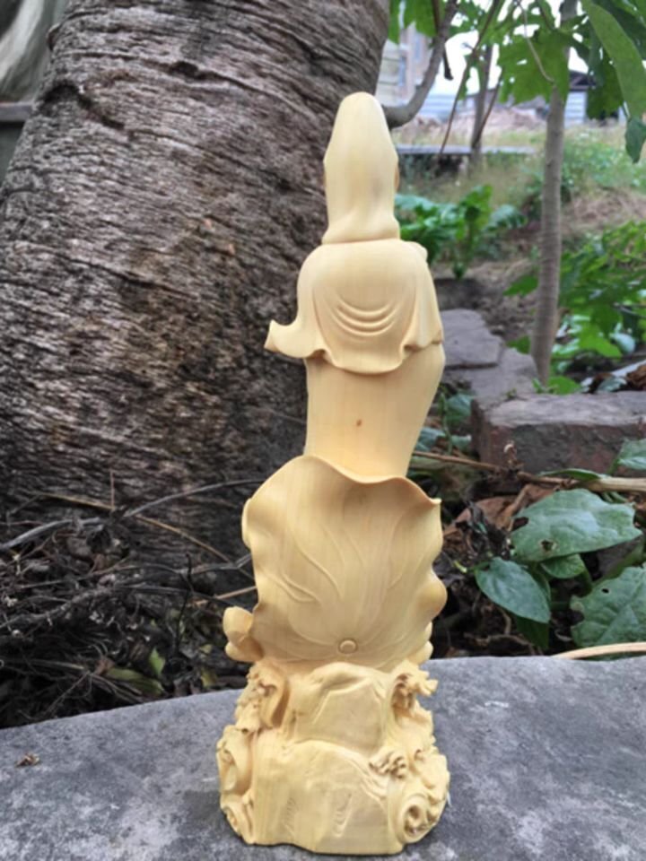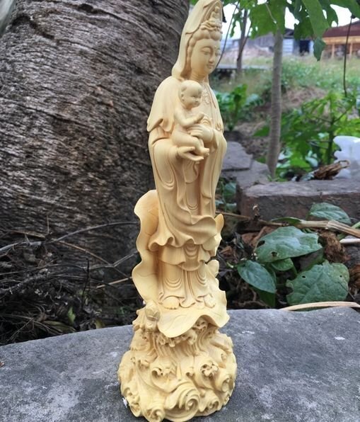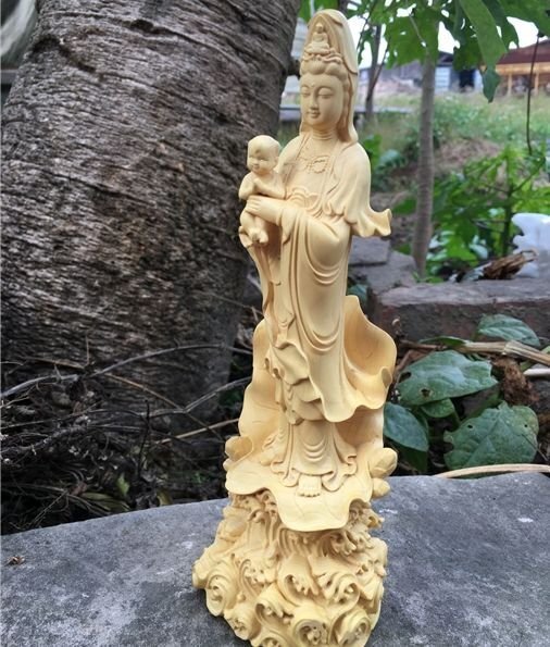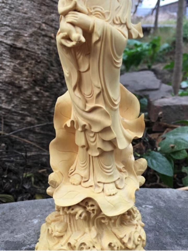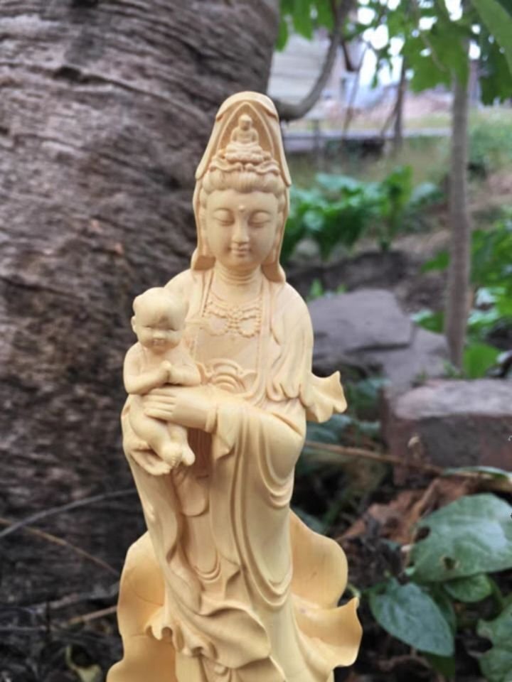 木彫り仏像 慈母観音立像 22cm ツゲ製高級木彫り『安産祈願・子育ての守護尊・水子供養』 子安観音 子育て観音