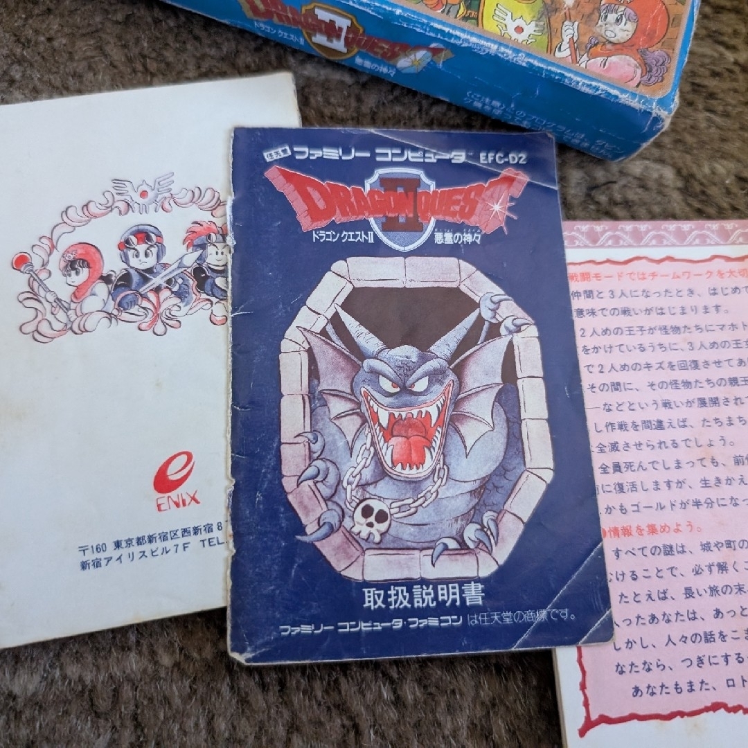 FC ドラゴンクエストⅡ悪霊の神々 ENIX箱説明書付き破れダメージございます正規品懐かしのレトロゲームです環境がないため動作未確認です。ジャンク扱い現状渡しでお願いします。他のソフトなどとまとめ買いで合計から200円引き致しますので購入前にメッセージください。たくさん出品していますのでぜひ他のものも見てください同時購入、同梱発送にて送料が安くなる場合があります☆レア物、1点物多数あり無くなり次第終了です簡易梱包にて発送予定ですよろしくお願いいたします