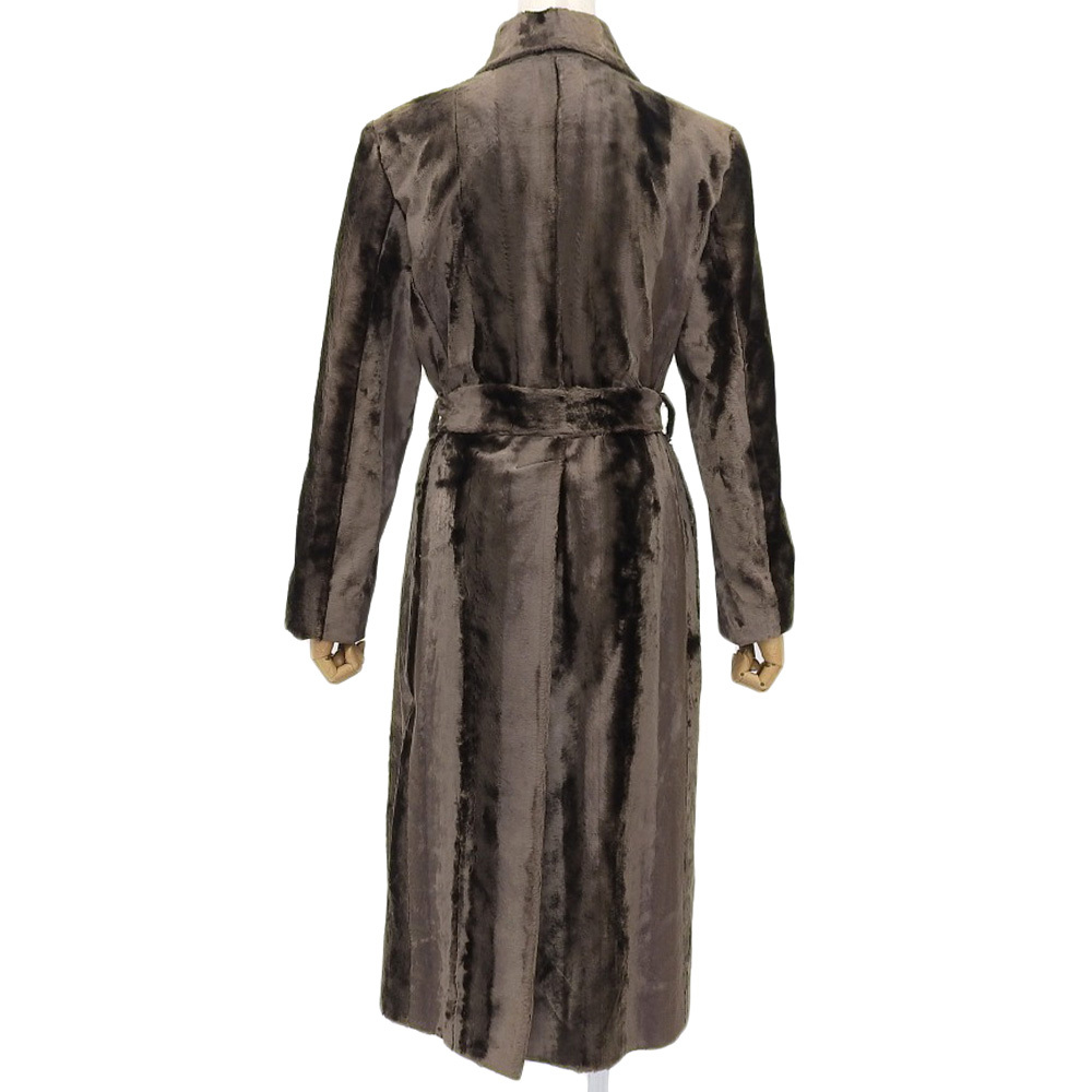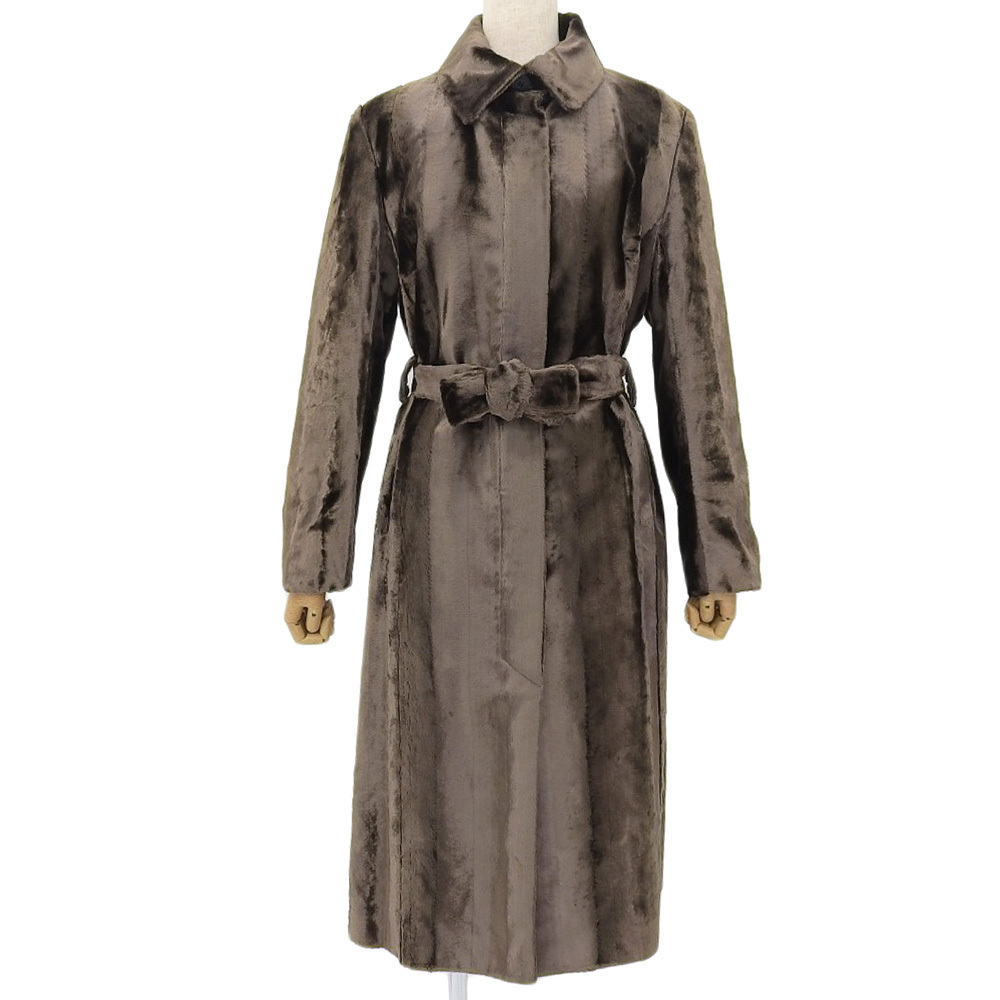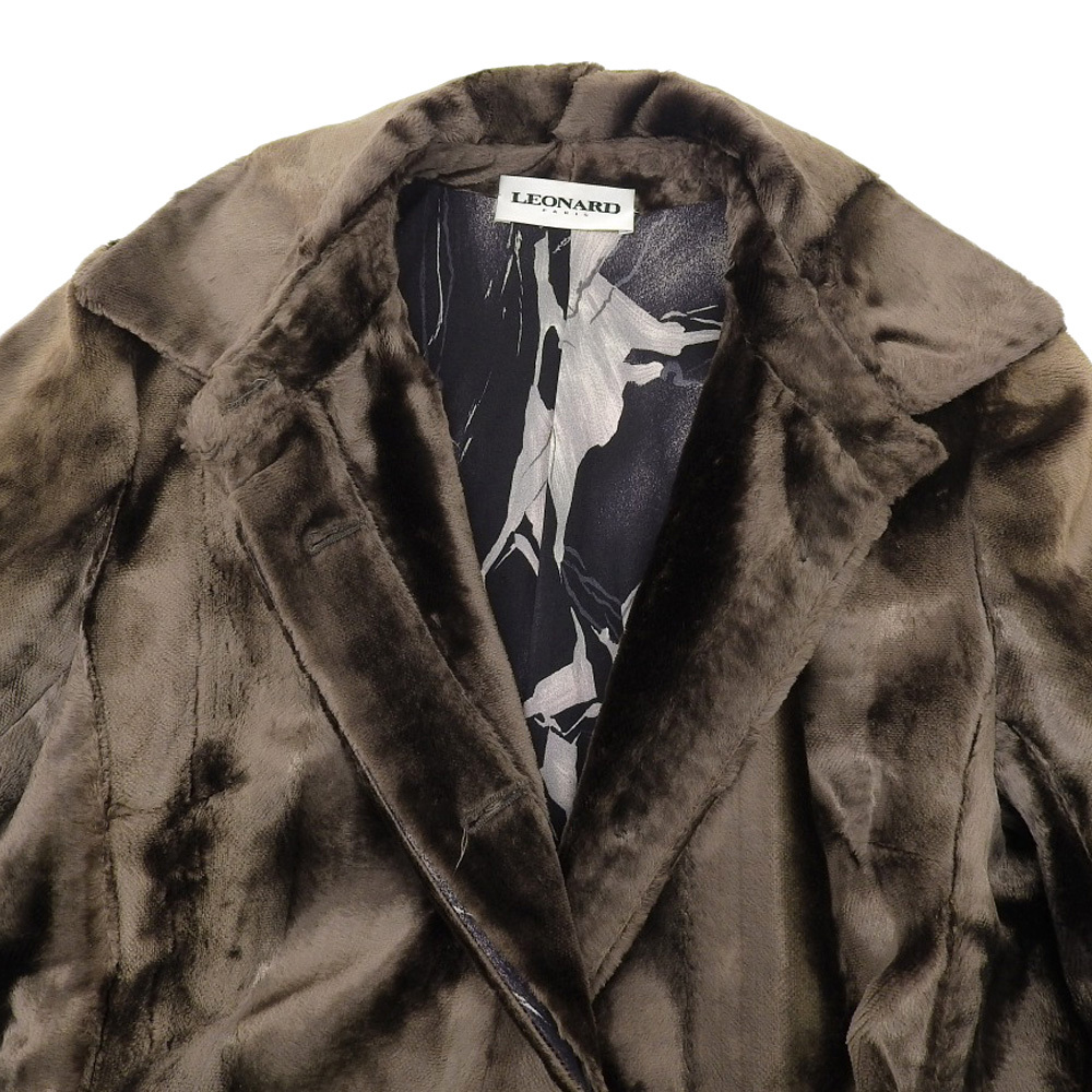 超美品 レオナール 現行ロゴ 高級 ベルベット シルク100% ライナー ベルテッド ロングコート ダークブラウン 38 S-M レディース オフィス |