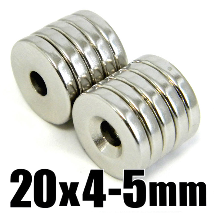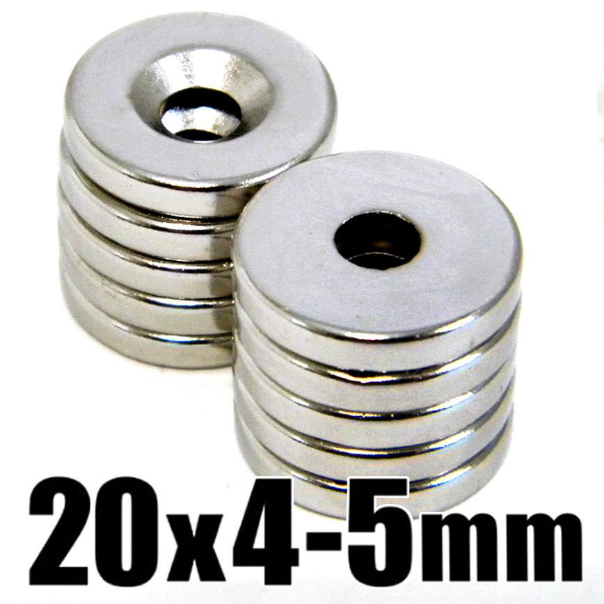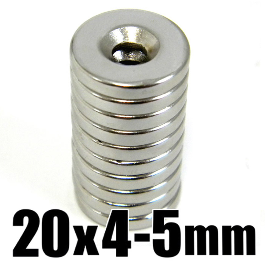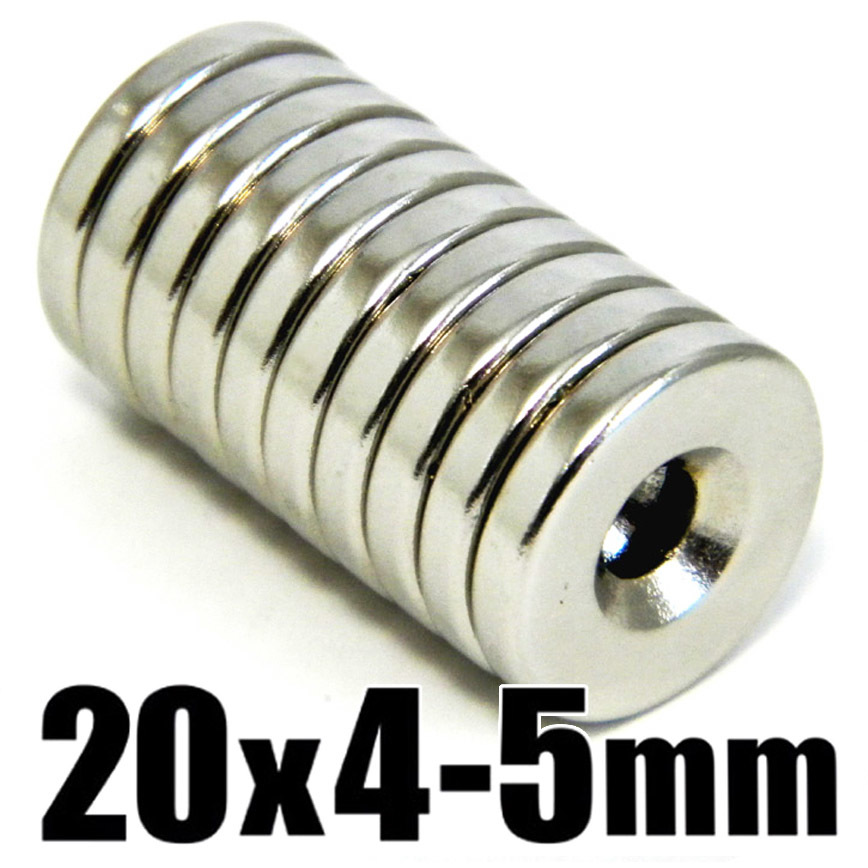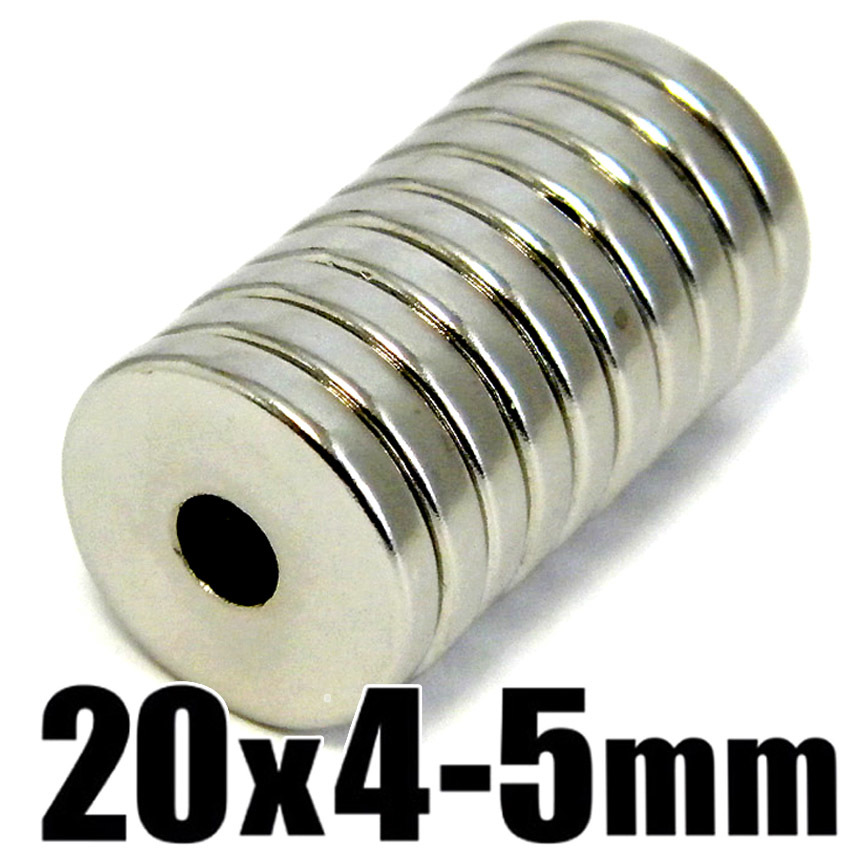 ◆ 穴あき 丸形 マグネット ◆ ネオジム 超強力 磁石 直径20mm x 厚み4mm(ネジ穴 5mm)【10個セット】◆