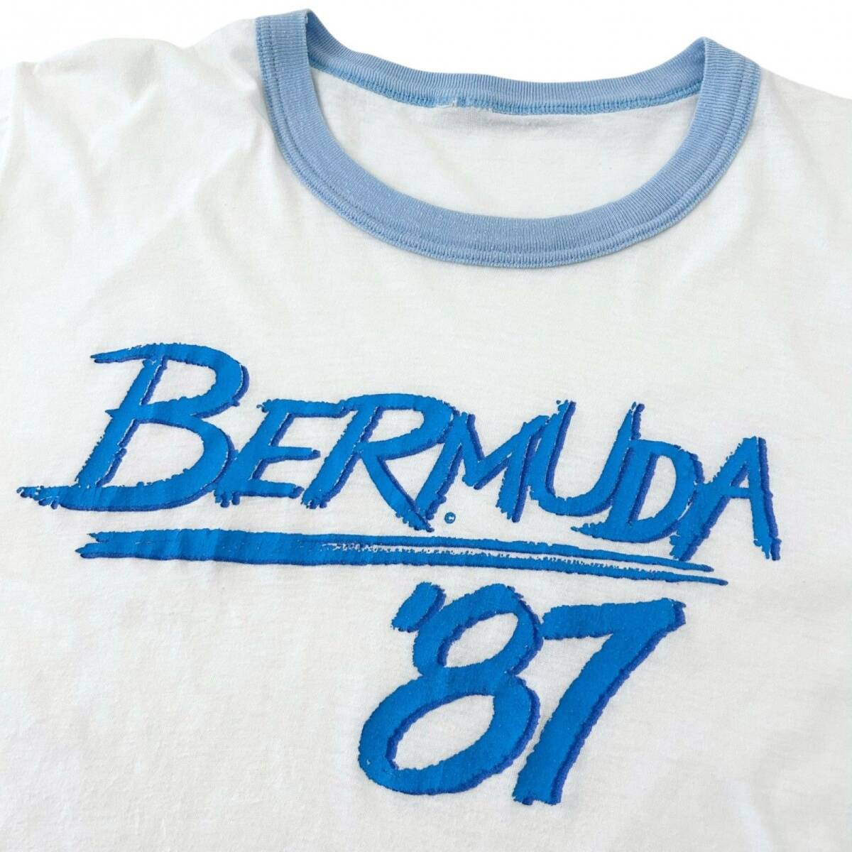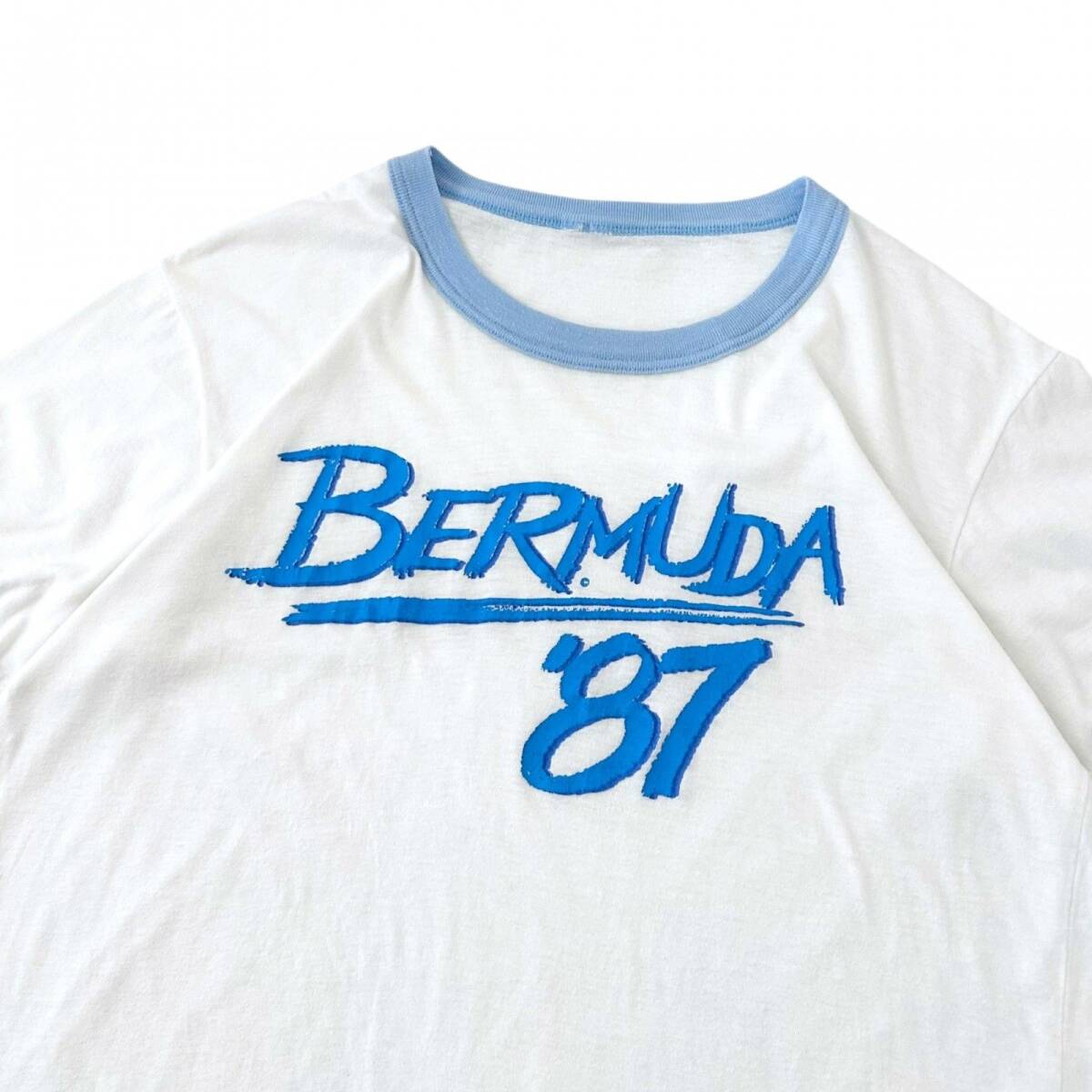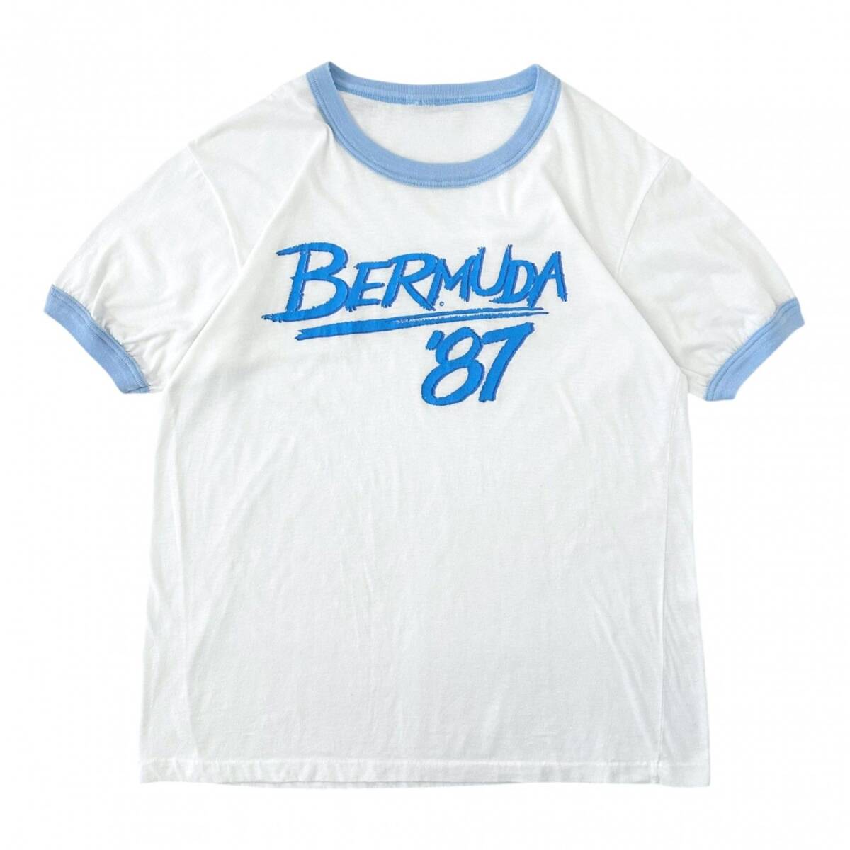 ・アイテム形状:L 80s ヴィンテージ リンガーTシャツ BERMUDA ロゴ シングルステッチ コットンポリ