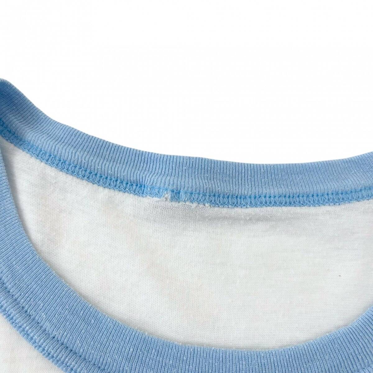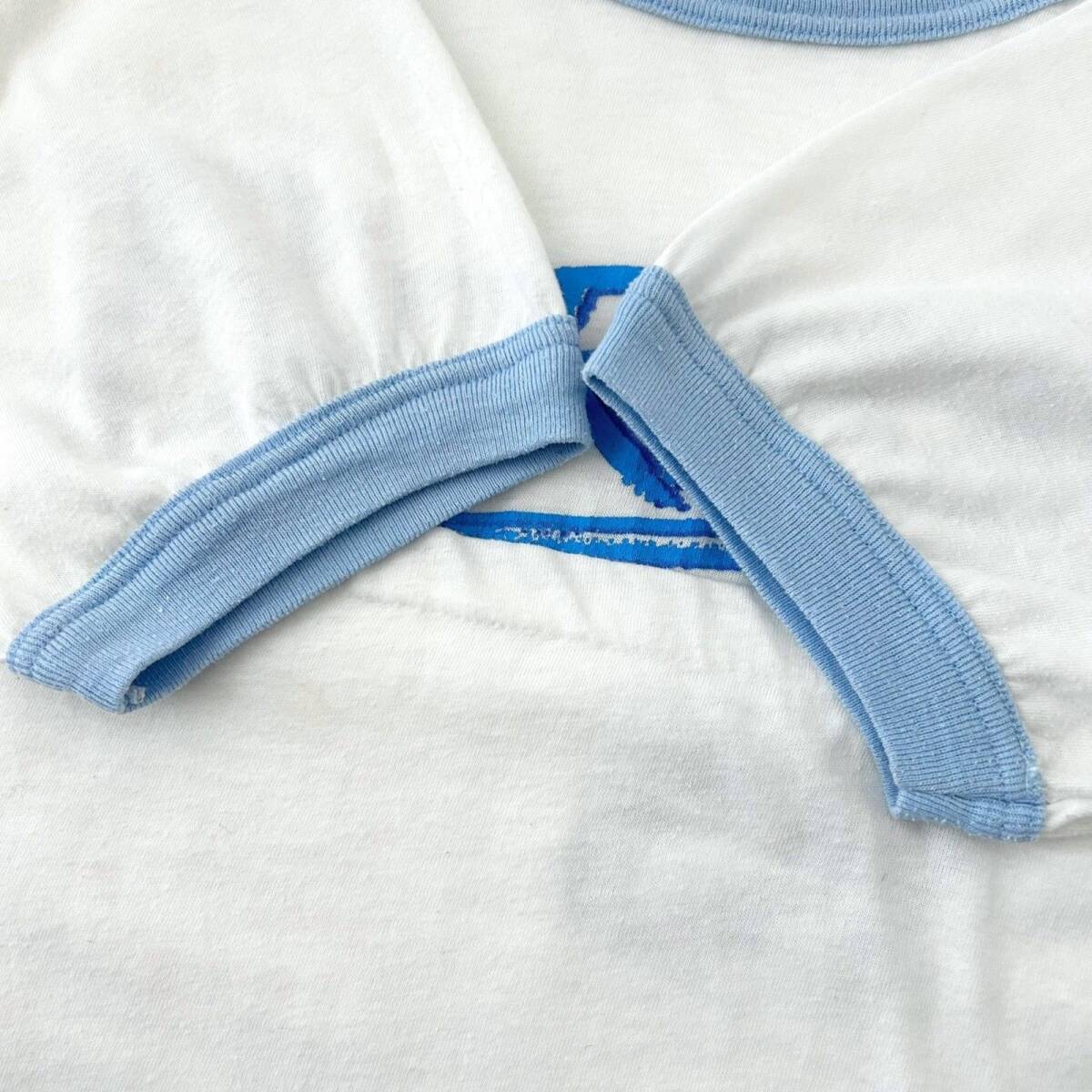 L 80s ヴィンテージ リンガーTシャツ BERMUDA ロゴ シングルステッチ コットンポリ ホワイト ブルー 水色