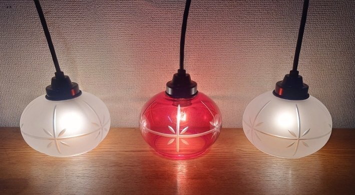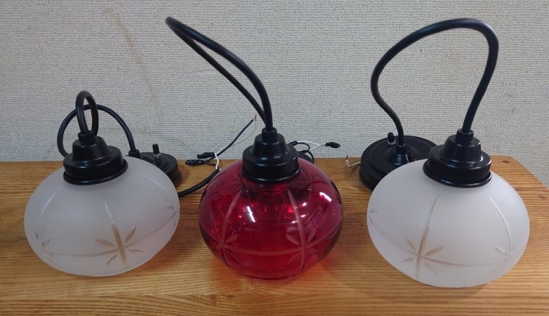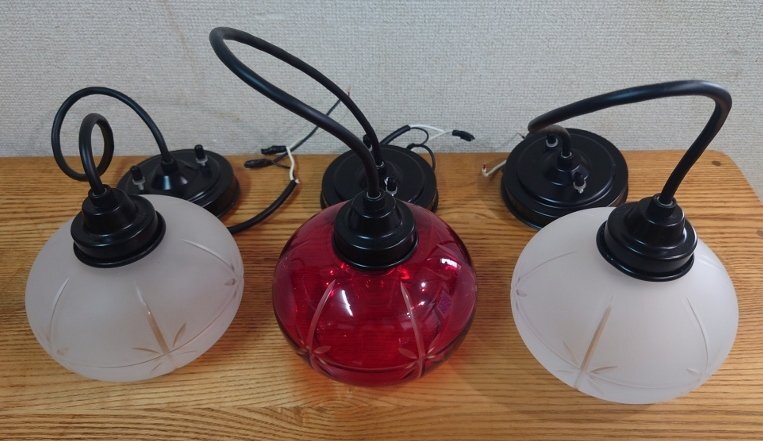 | ◆商品説明◆ | 遠藤照明 ENDO 和風照明 ペンダントライト ERP7230WB×2 ERP7230WB×1 100V 合計3個 中古ランプ付属 中古美品です。 透明カット入ガラス(透明消し)のシェードで ほんわりとした明かりを灯してくれます。 2つはホワイトのシェードで、1つは赤のシェードとなります。 【仕様】 サイズ(約) :全長 600×幅 Φ150×高さ 140(mm) 重さ(約) :0.7kg ※白熱電球付属しますが、中古品となりますので、 おまけとお考え願います。 ※電線先端をヨリ線(本体)とFケーブル1.6mmを圧着端子で圧着しております。 出品前に点灯確認済です。 大きく目立つようなダメージは見受けられませんが、 中古品ですので、小傷等はご容赦願います。 直付け照明となります。 電気工事士に取り付けを依頼頂く事をお勧めします。 ※梱包時にシェード、電球の割れを防ぐために、分解して梱包し、 発送する可能性がございます。 仮にそのような場合は、落札者様にて組み立てをお願い致します。 工具不要 予めご了承願います。 中古品ですので、神経質な方の入札はご遠慮願います。 ノークレームノーリターンとさせて頂きます。 | |