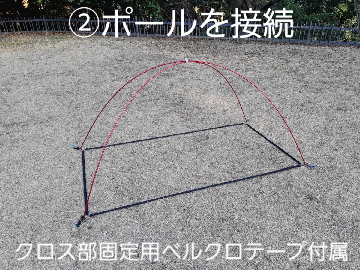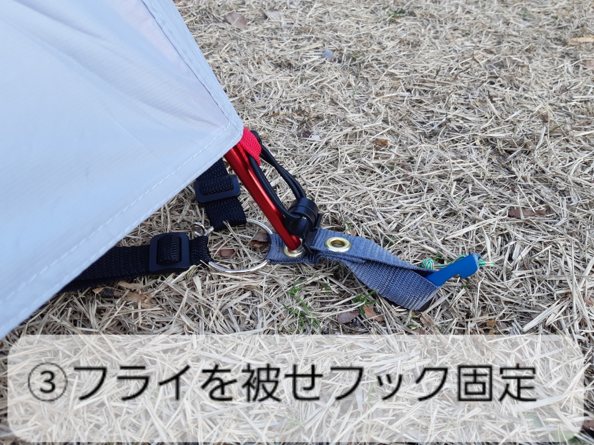 スタンディングテープを使用する事で、ポールとフライシートのみでの自立を可能にします。