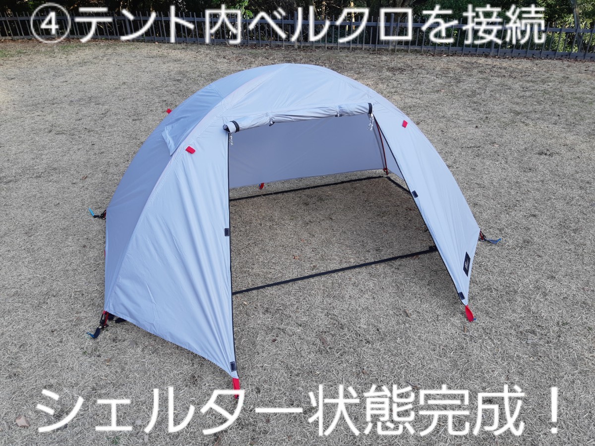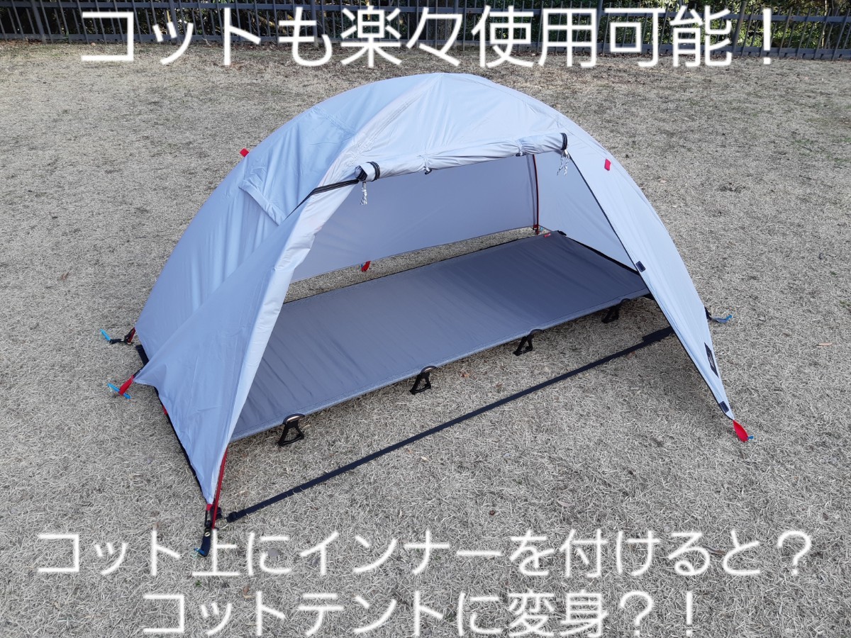 寝る直前までインナーテント無しで過ごせますので、ソロテントでも広々過ごせます。