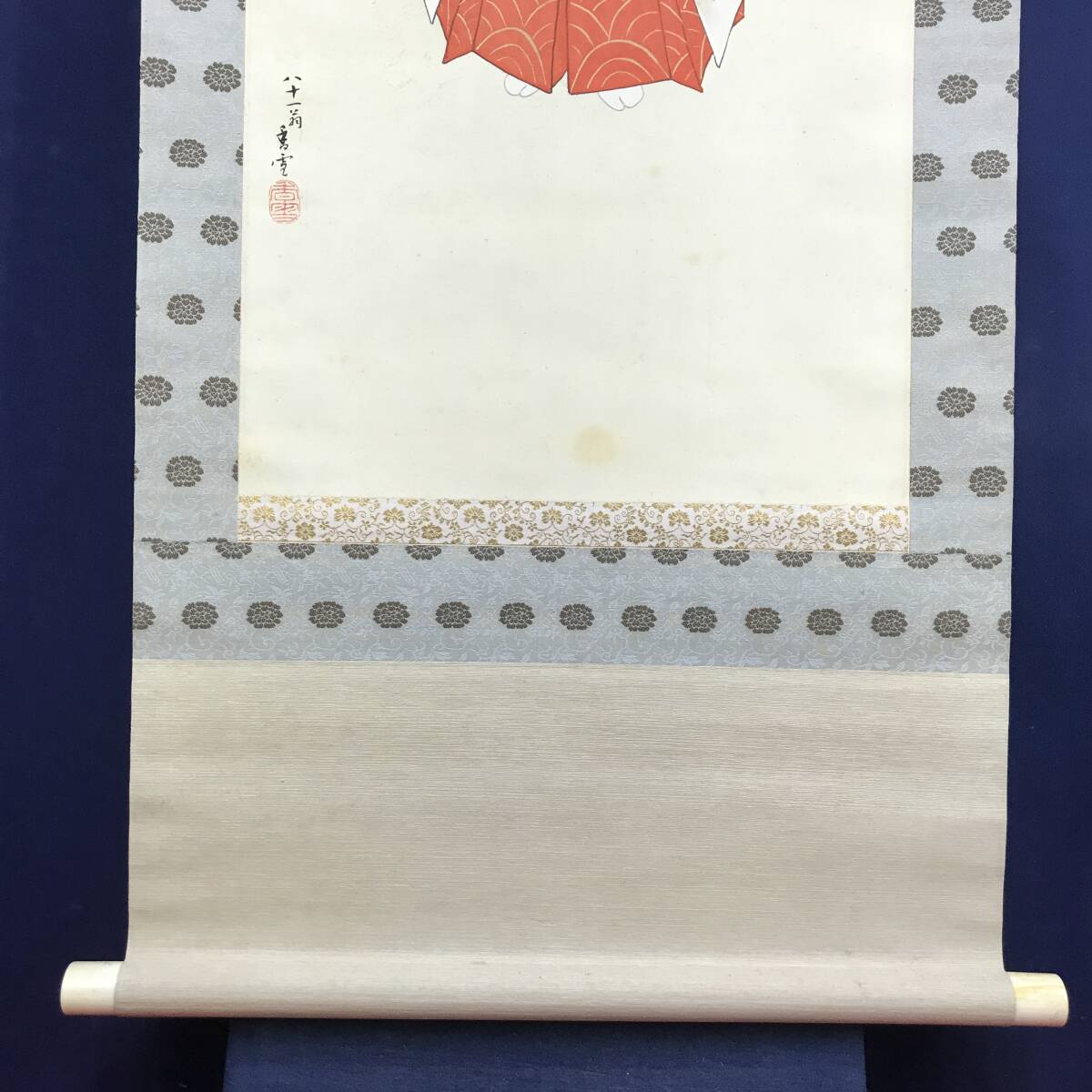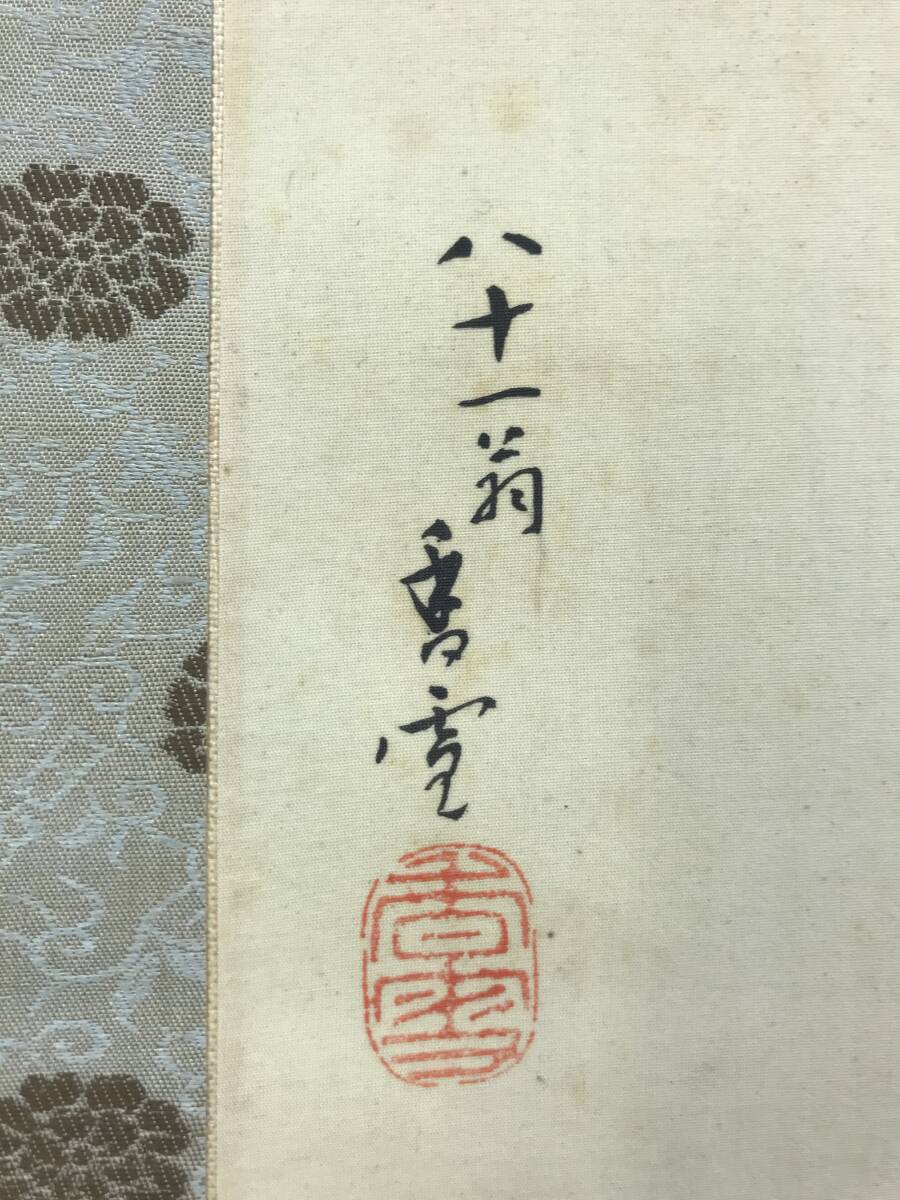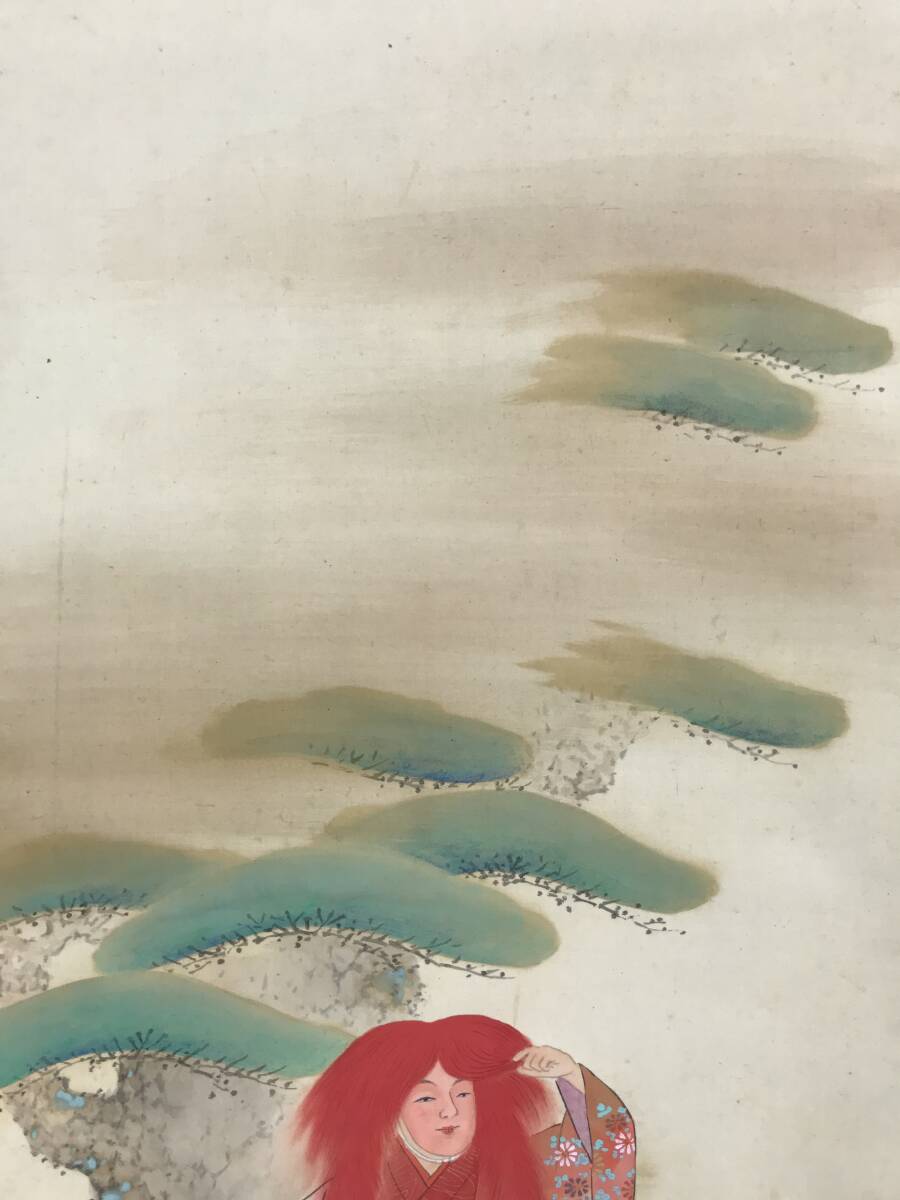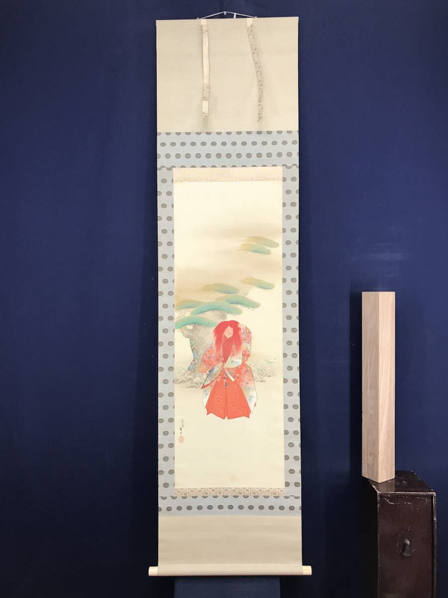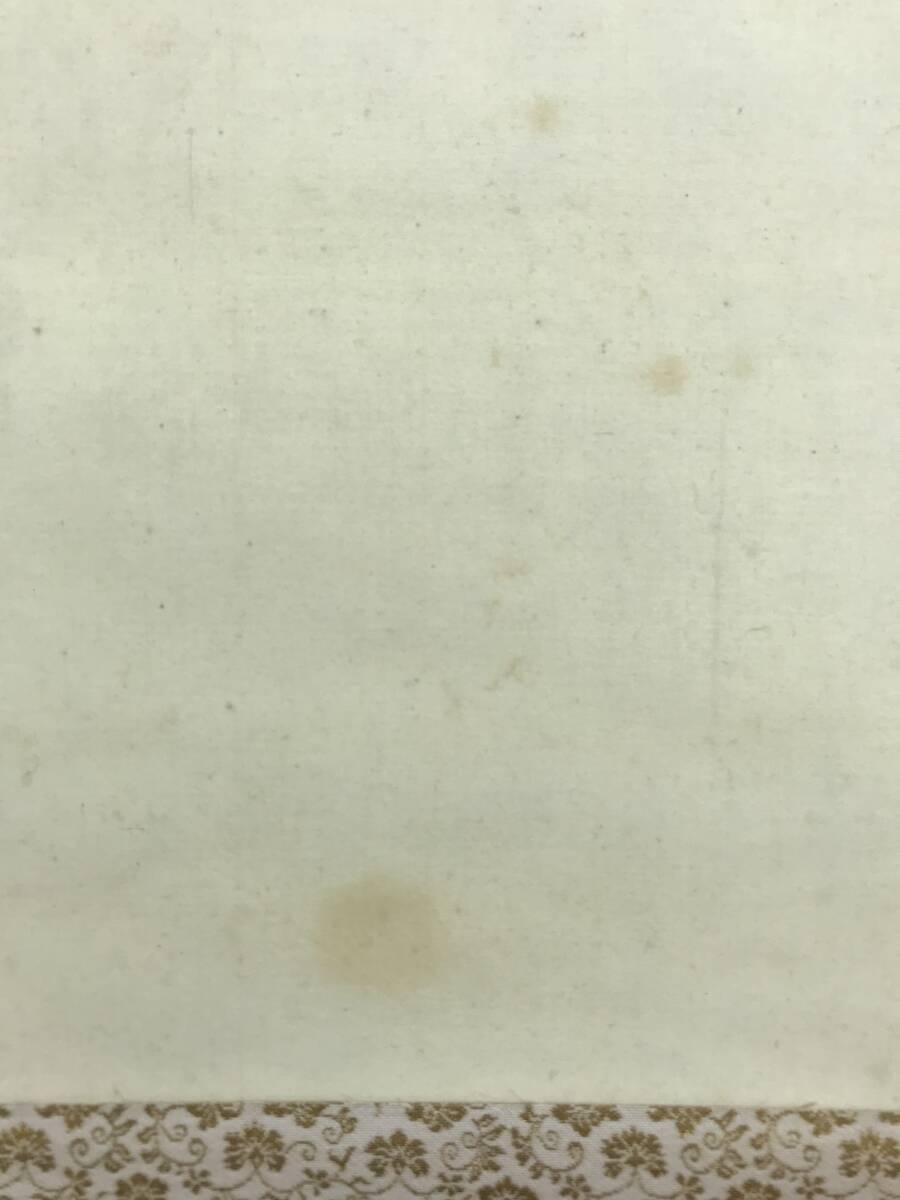 【作品状態】 本紙は絹本肉筆です。本紙は薄汚れ、多少の汚れシミあります。表装は天地に薄汚れあります。