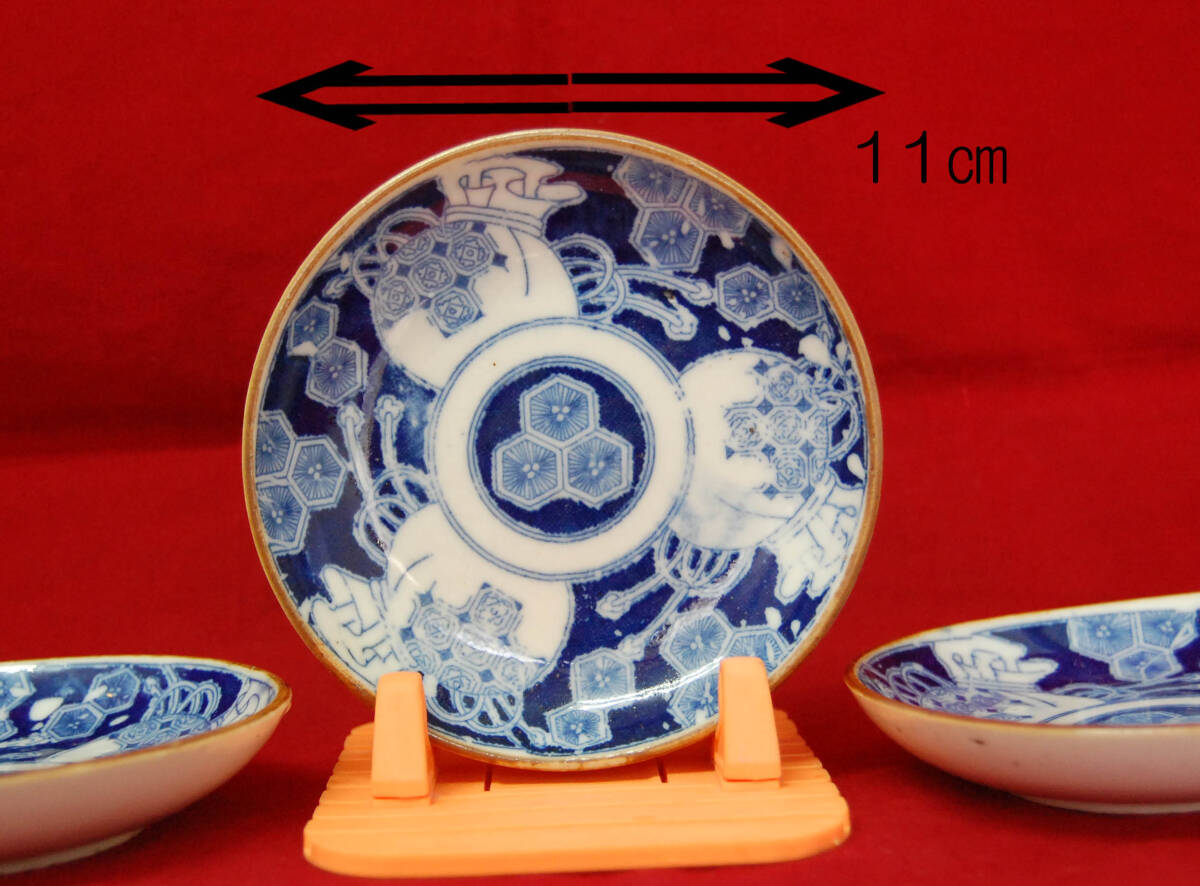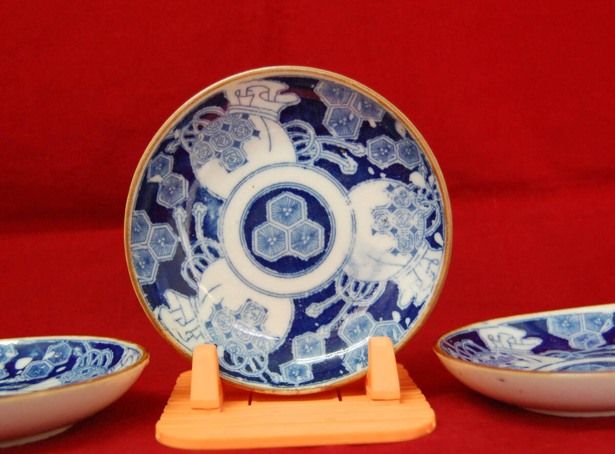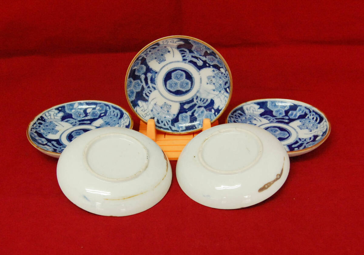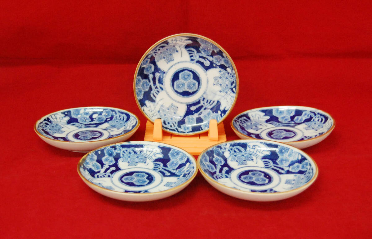 | 【時代物】 印判染付 宝袋文小皿 5客 | ||