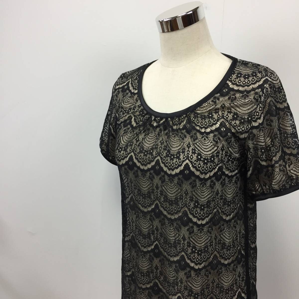 商品: BARNEYS NEWYORK/バーニーズ ニューヨーク ワンピース 半袖ワンピース レース ブラック×ベージュ サイズ不明 レディース