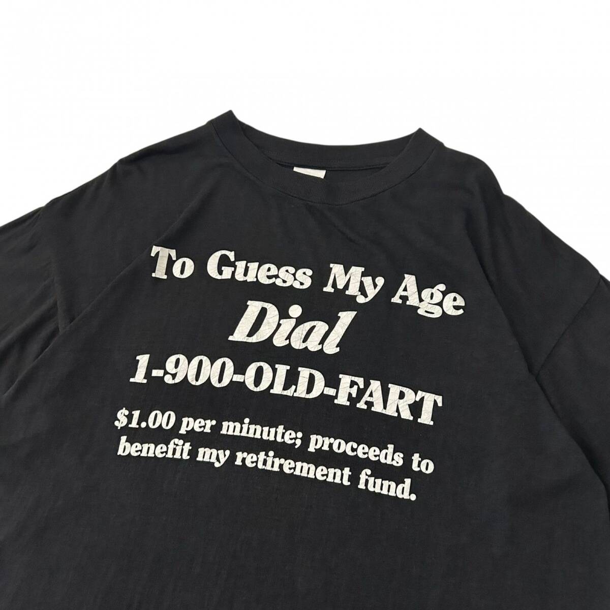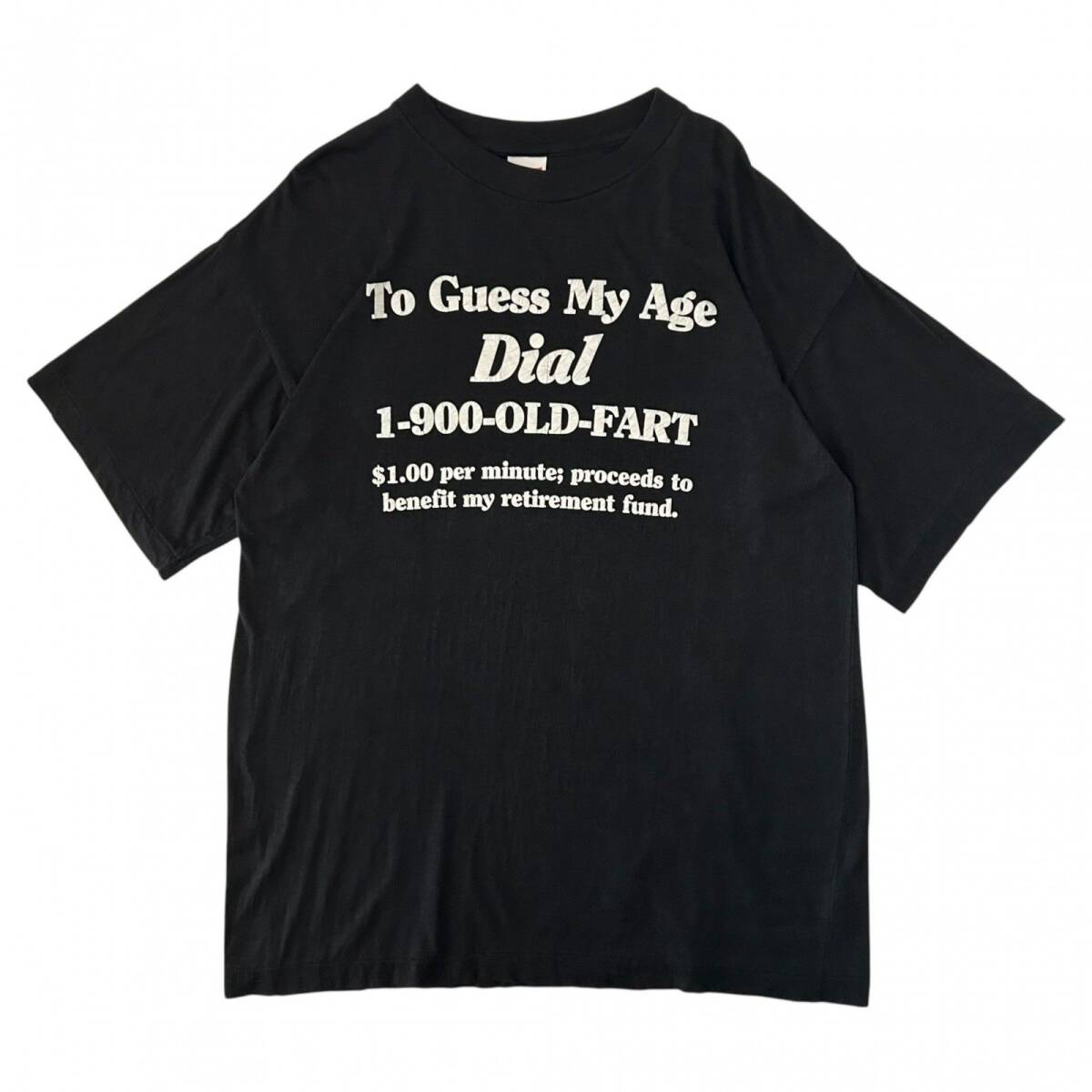 フロントに大きくプリントされた「To Guess My Age Dial 1-900-OLD-FART(僕の年齢を当てたけりゃ、1-900-OLD-FARTに電話して)」の一言。
