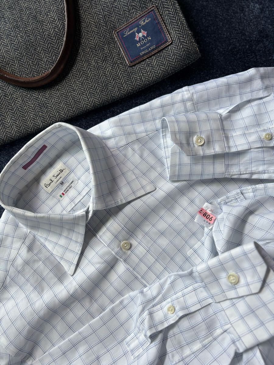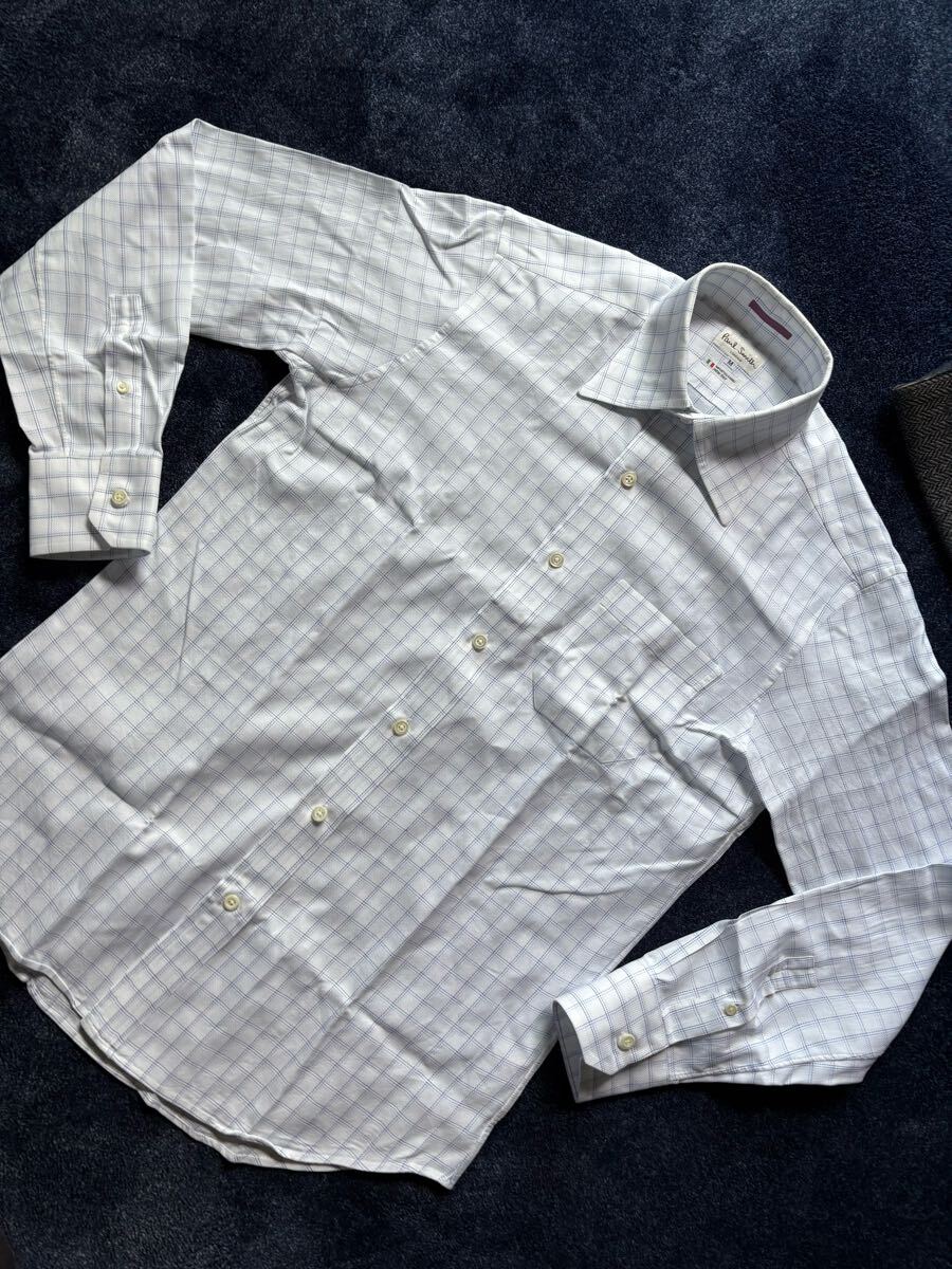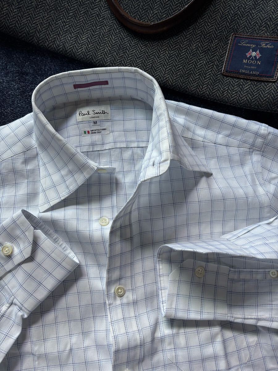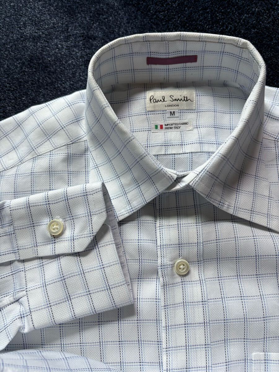 超美品 日本製 ポールスミス Paul Smith イタリア製生地 ツイル生地風 厚手オックスフォード 襟スタンダード チェック 長袖シャツ sizeM