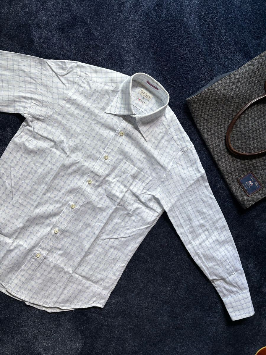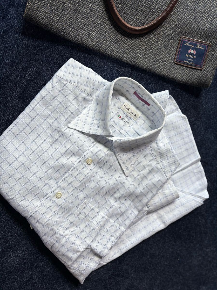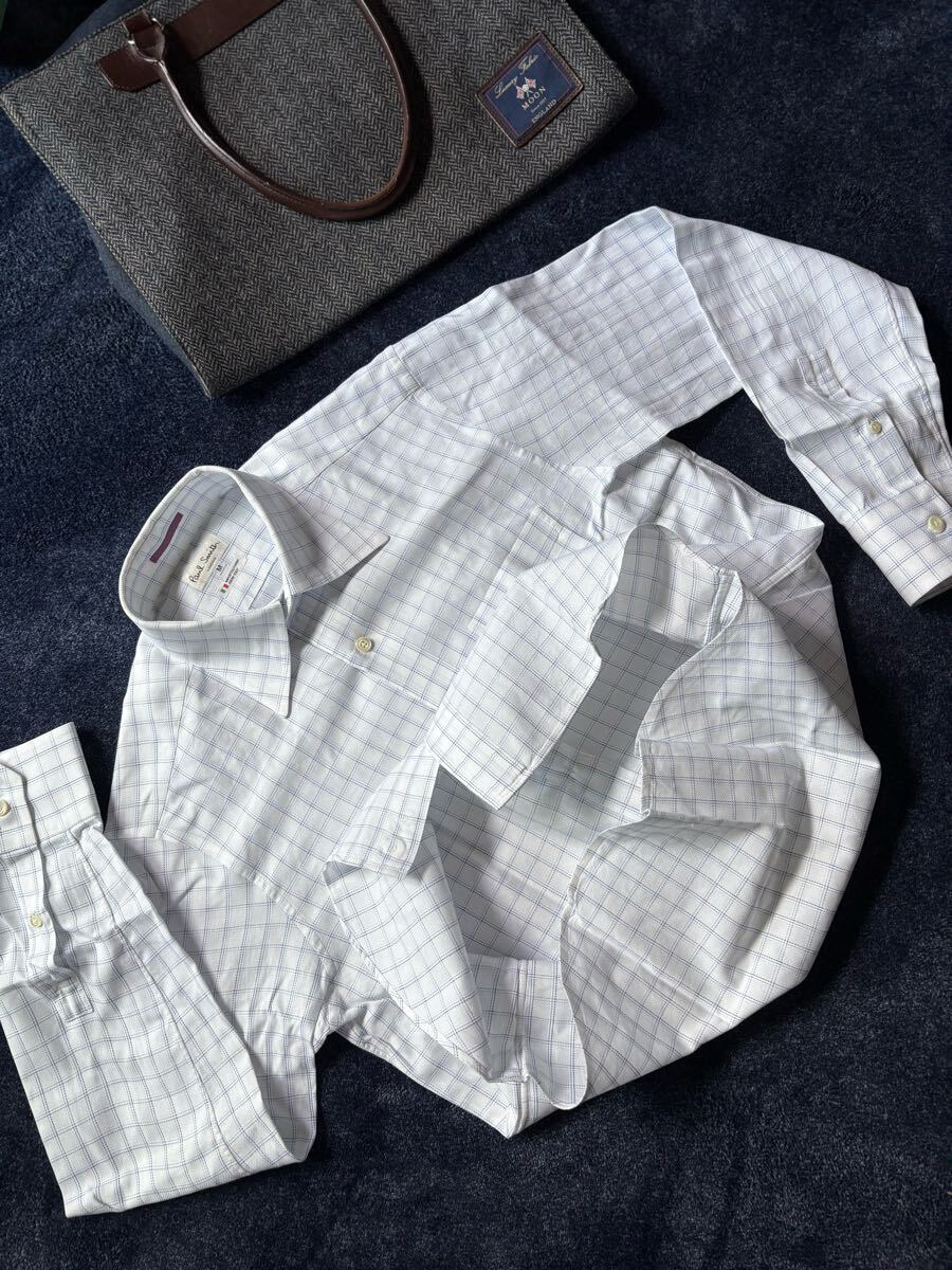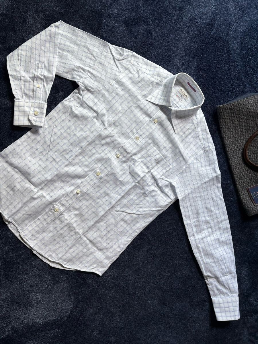 超美品 日本製 ポールスミス Paul Smith イタリア製生地 ツイル生地風 厚手オックスフォード 襟スタンダード チェック 長袖シャツ sizeM
