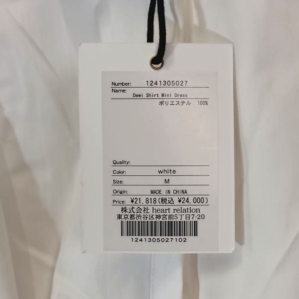 【タグ付き】Dewi Shirt Mini Dress ミニシャツドレス 長袖 white Her lip to