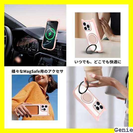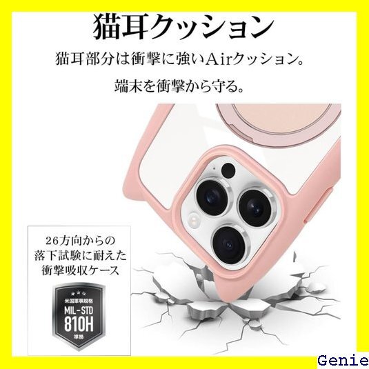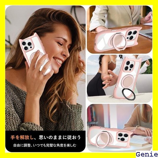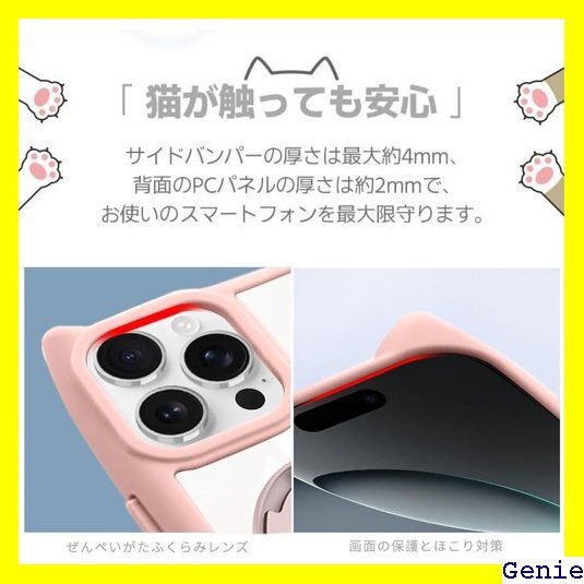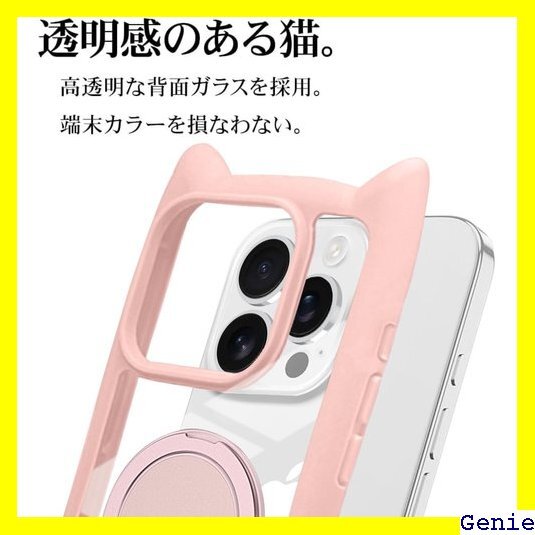 iPhone 16 Pro Max 専用 ケース クリア リング付き カバー ハイブリッド 猫耳 ネコミミ 背面ガラス クリア かわいい おしゃれ ストラップホール アイフォン 16 Pro Max スマホケース 多機能 全面保護 落下防止 ピンク 75