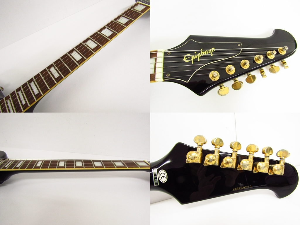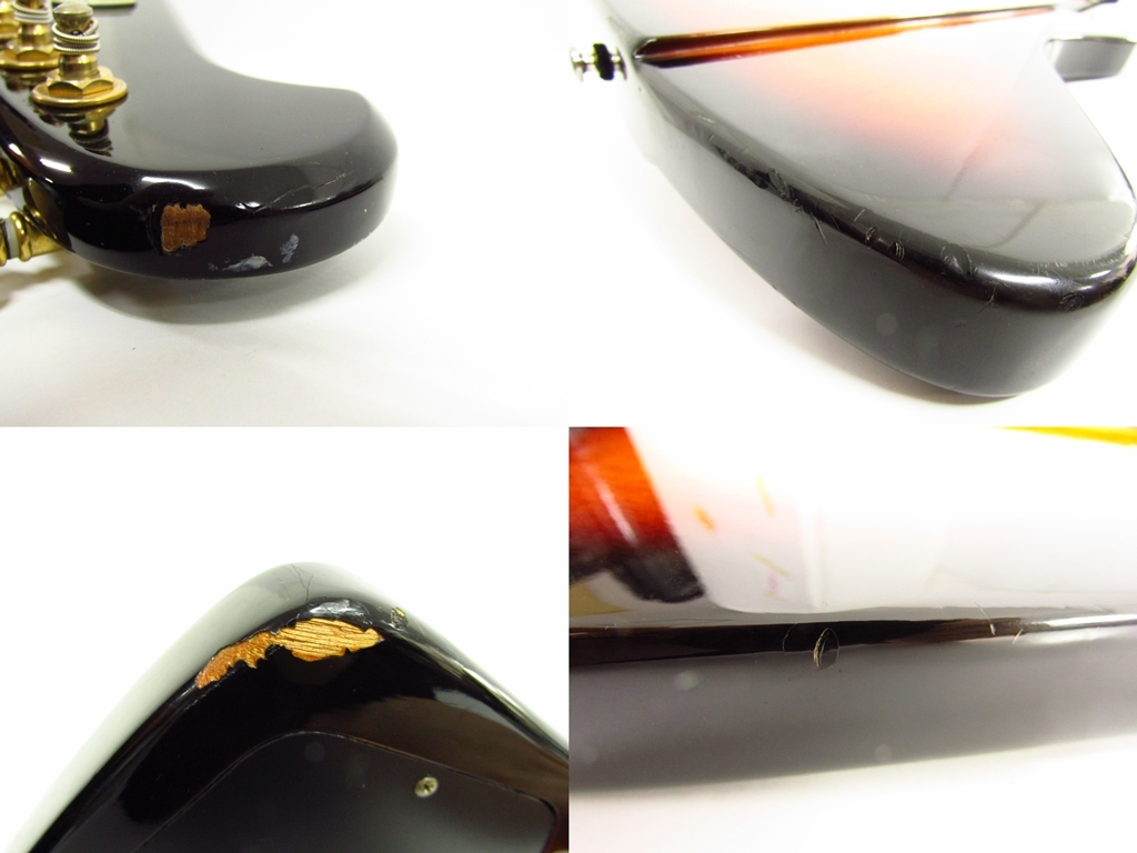 | ※こちらは一般のお客様から買取をした中古商品です。 【状態】 使用感、傷、打痕、ヘッド上部・ボディ下部にダメージ、金具部分に傷、塗装剥げ、少々サビなどありますが、動作に問題はございません。 動作確認済みです。 (※掲載写真をご参考下さいませ。) フレット残り:7分山 ネック状態:ストレート トラスロッド:緩める方に僅か 弦高:1弦側 1.75mm、6弦側 2.25mm 重量:約3.7kg 現在では稀少モデルとなったファイヤーバード。 当モデルは2004年韓国製で、マホガニー・ボディ/マホガニー・セットネック/ローズウッド指板を採用。 オリジナルミニハムバッカ―P.Uを3基搭載、ファットな歪みと甘いクリーントーンが魅力的です。 ゴールドパーツやリバースヘッドなど本家にも引けを取らないレアなモデルです。 | |||||||