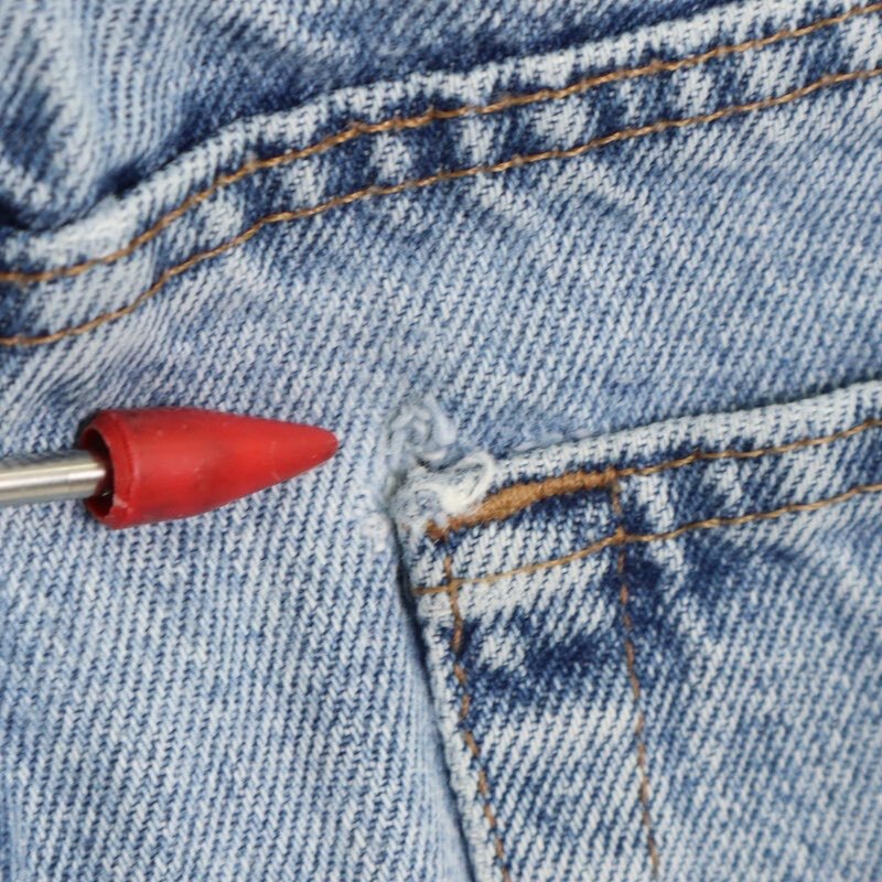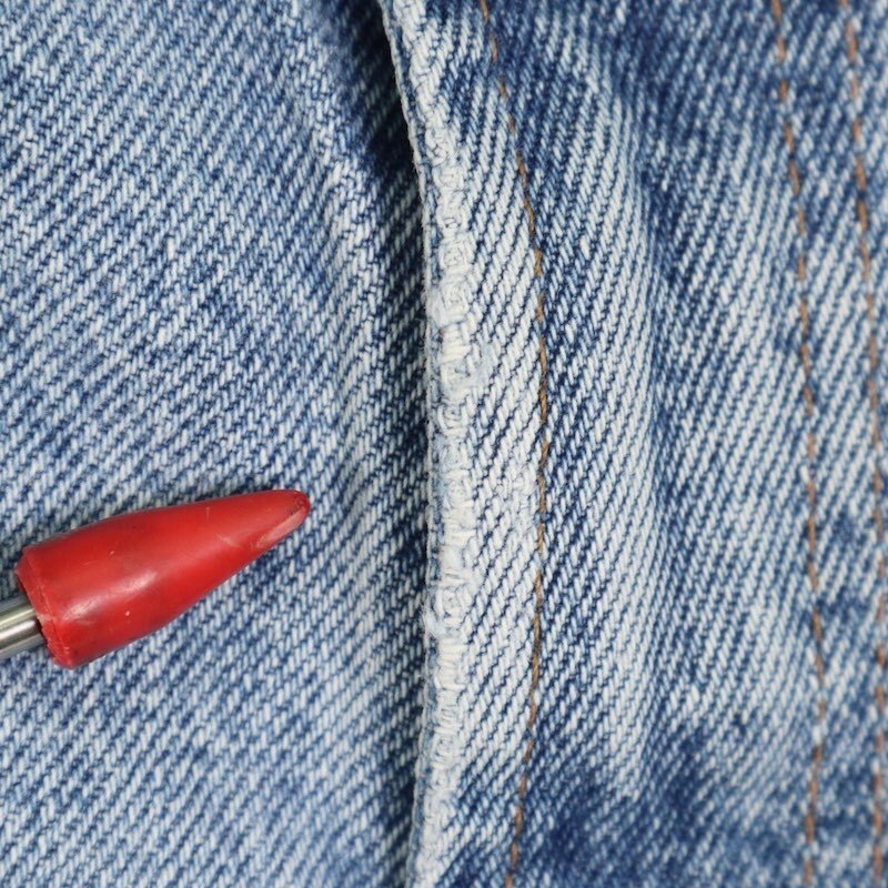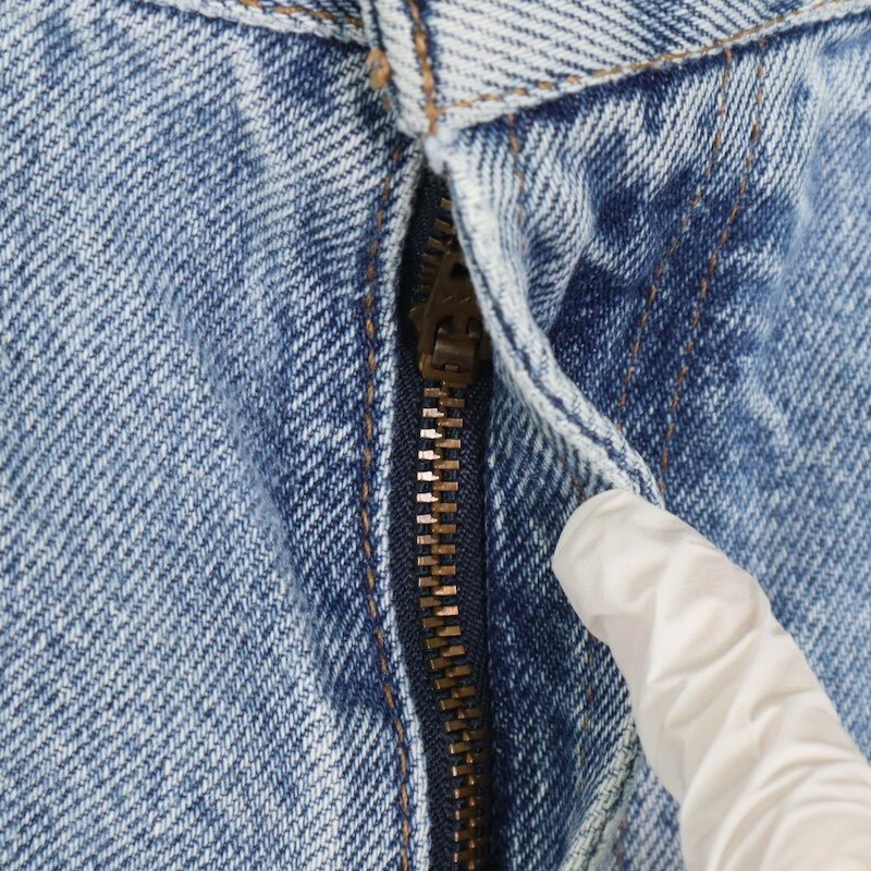 数ヶ所に薄い擦れ、後ろ左ポケット上に小さな穴がございます。着用に問題はございません。