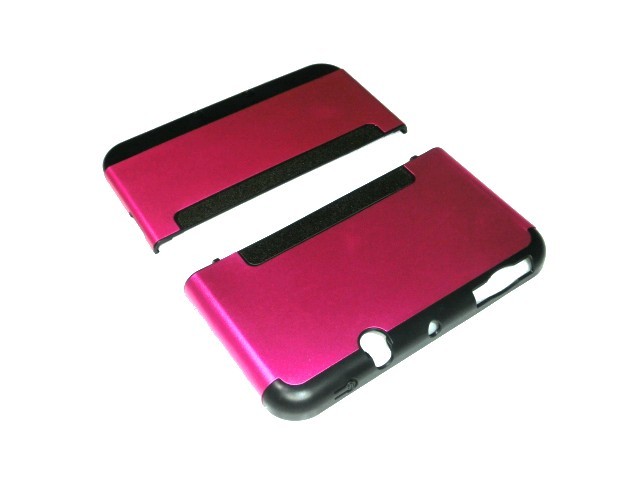 new3DSLL保護ツートンカラープラxアルミ収納ケースカバー桃