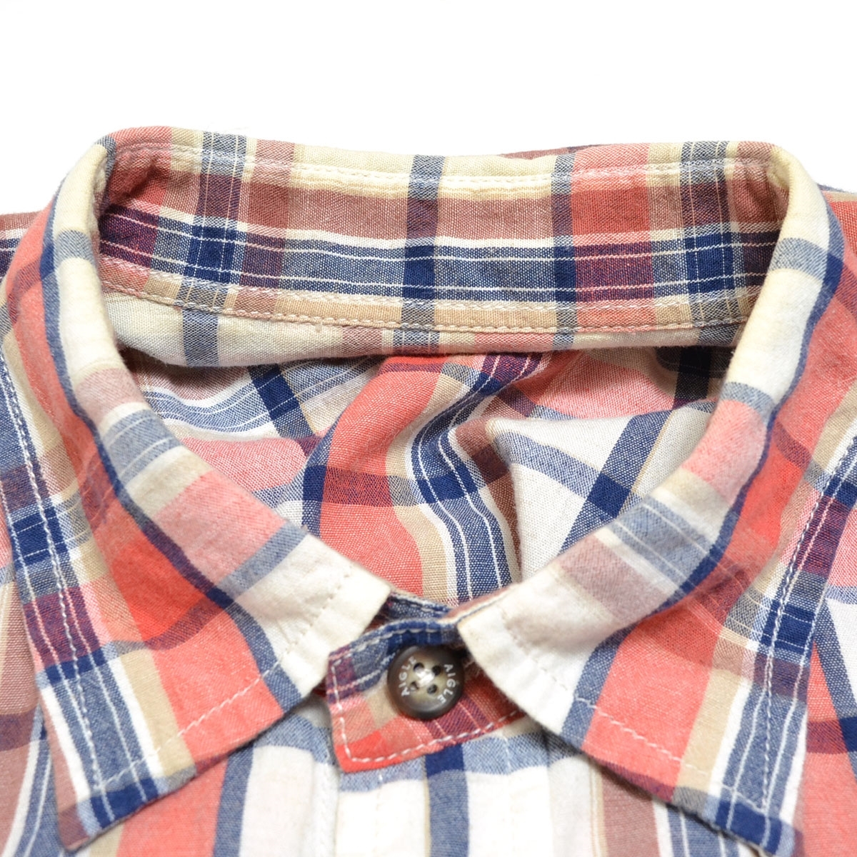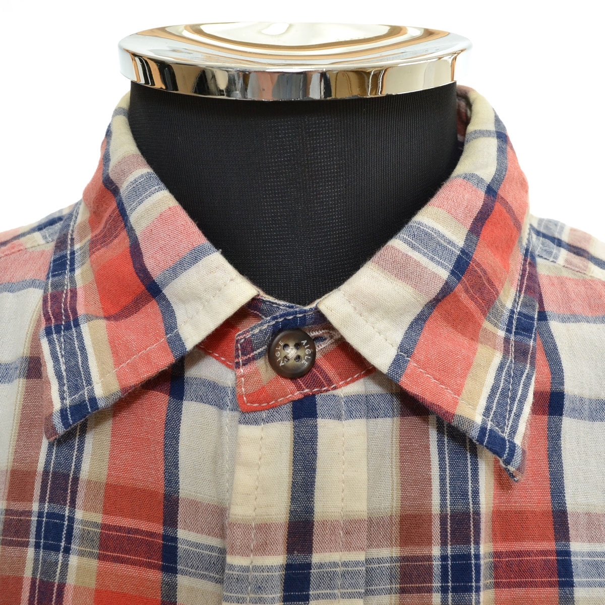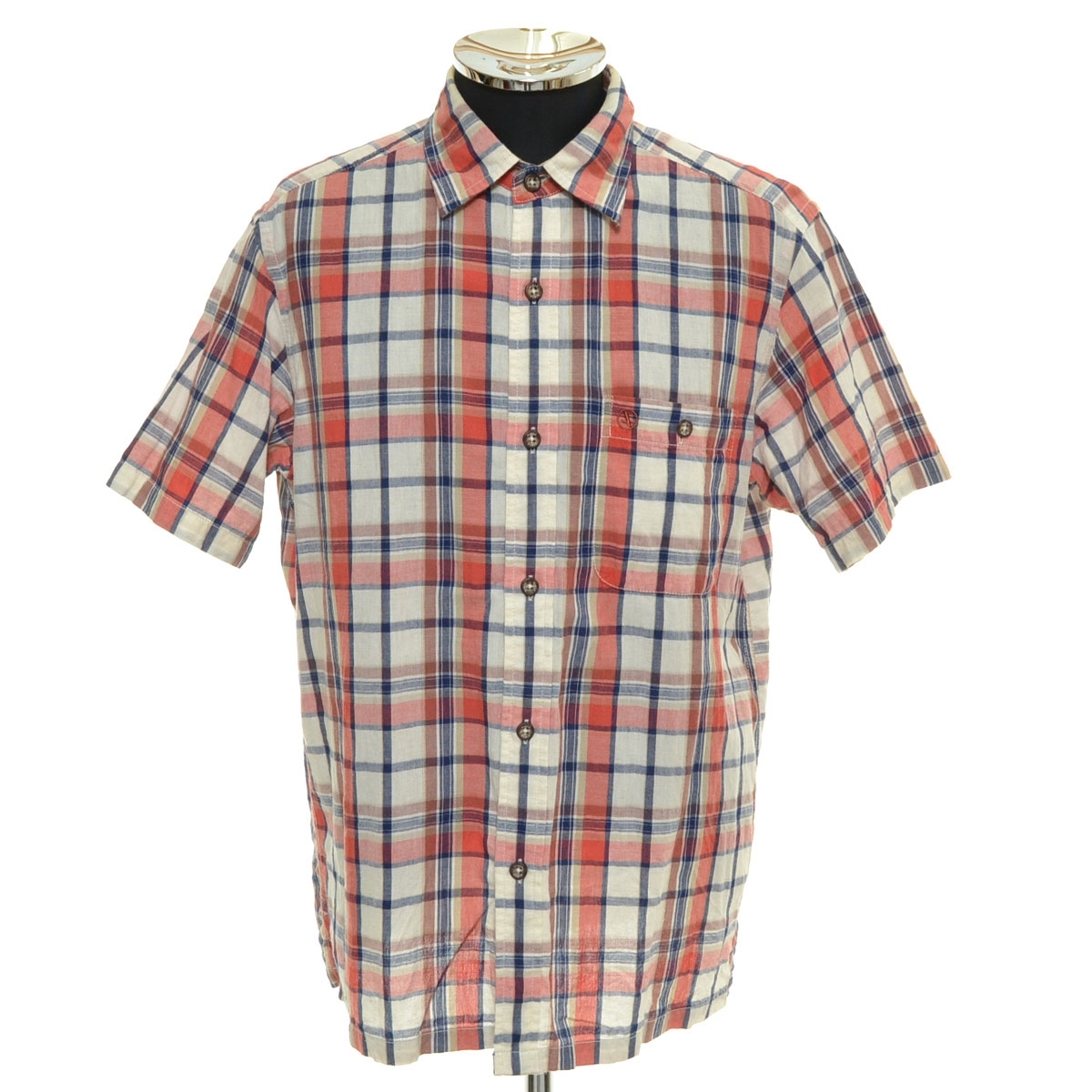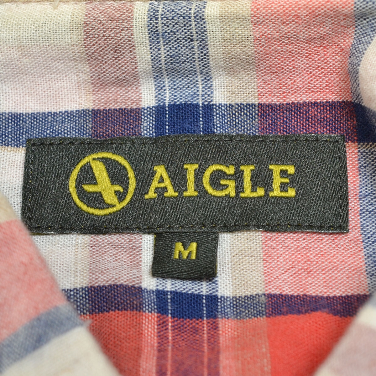 〇553446 AIGLE エーグル ○チェック半袖シャツ ロゴ刺繍 サイズM メンズ ホワイト