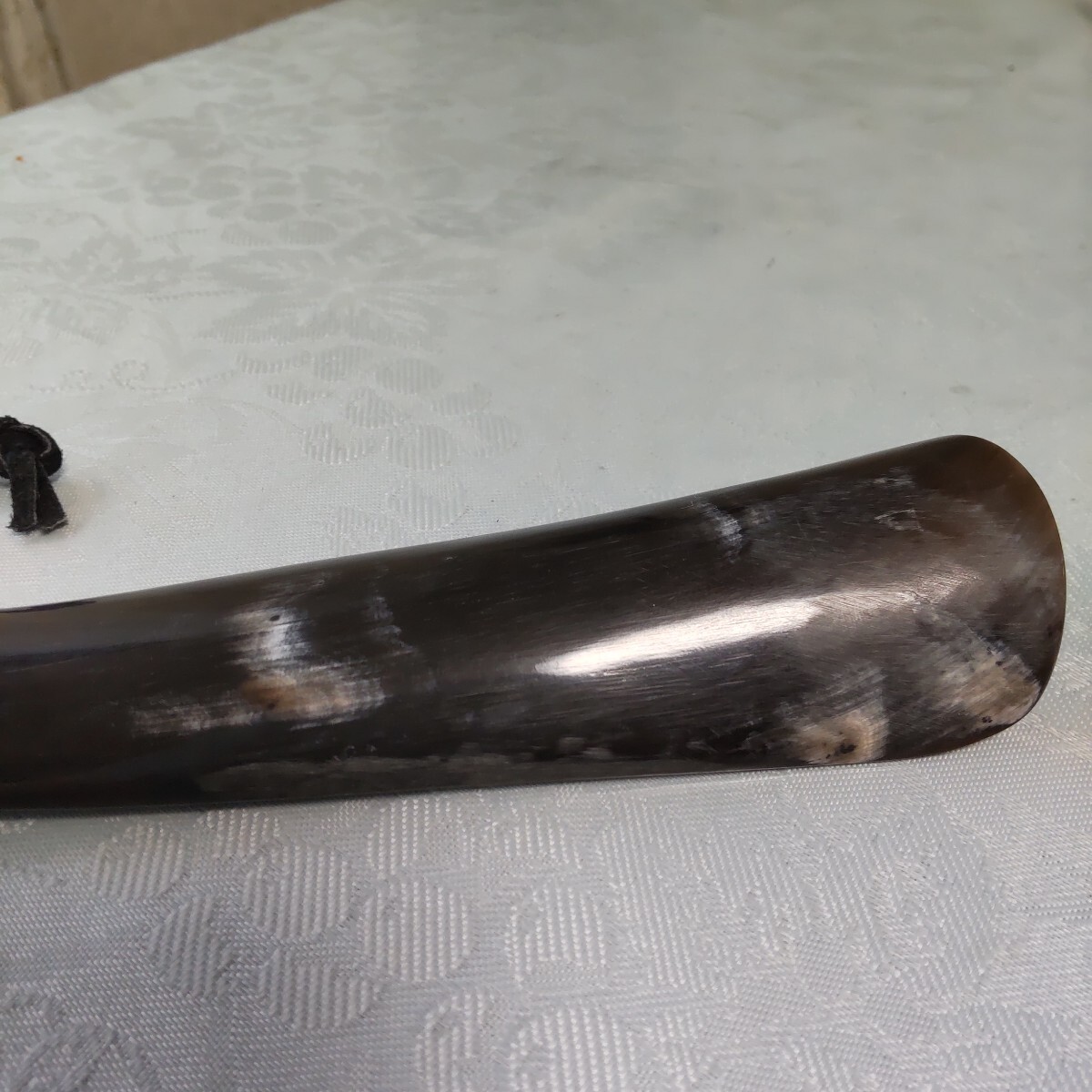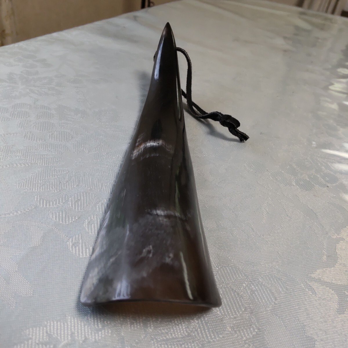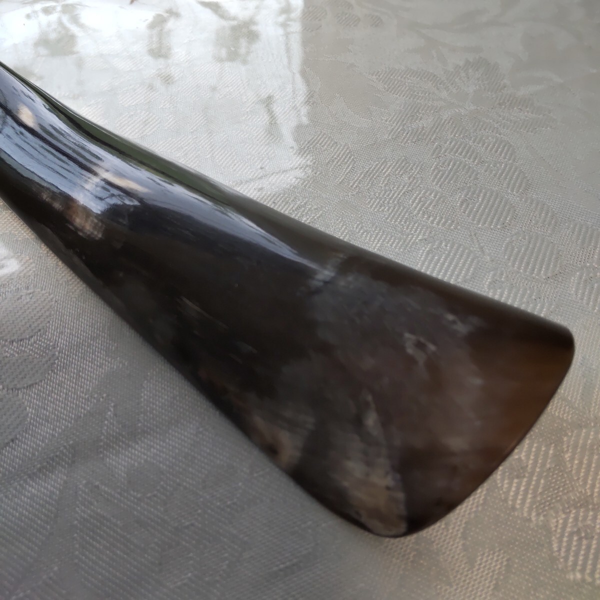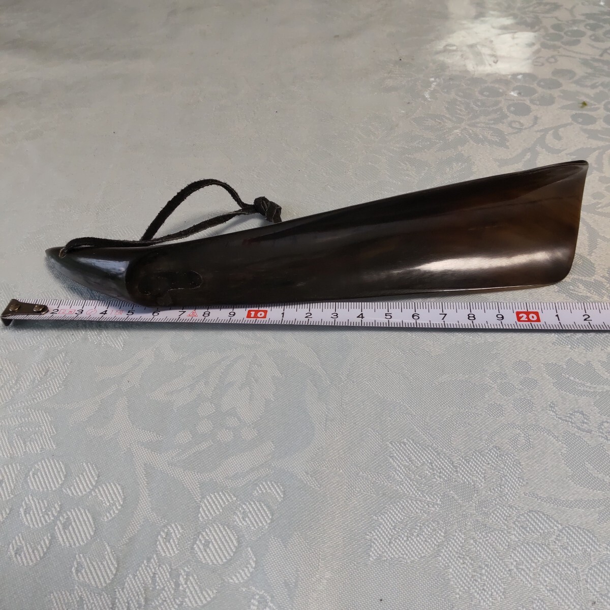 角の先から一本で手造り、天然の角ですから一本ごとに模様や筋目が異なり楽しい靴ベラです。