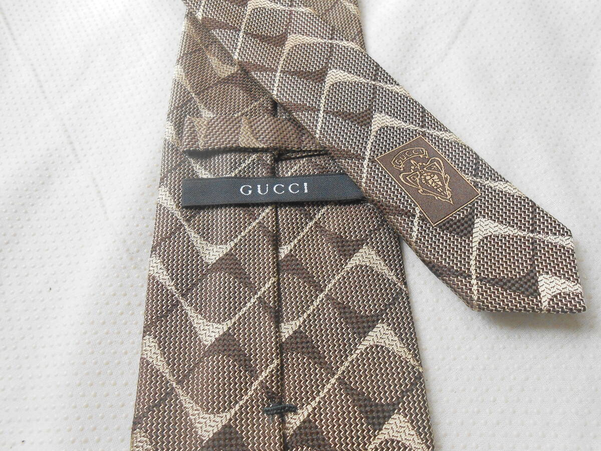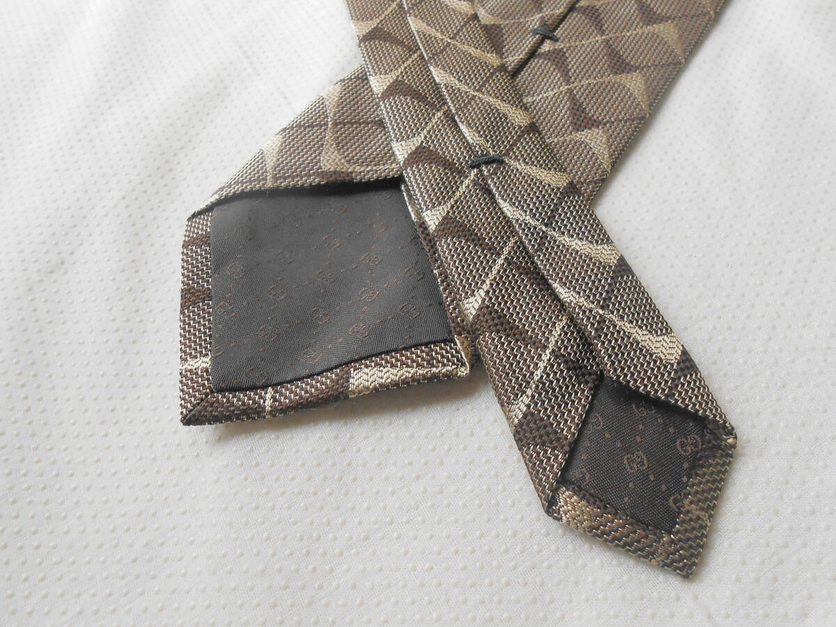E395美品GUCCIグッチ総柄模様お洒落厚手ネクタイ