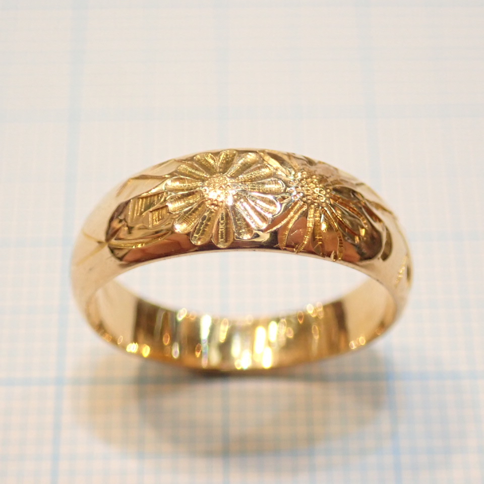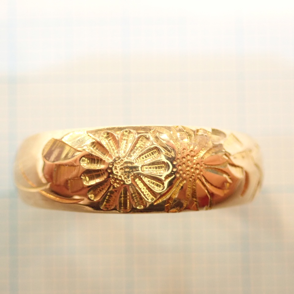 彫りは指輪の上部分に彫っており、熟練の職人技が光る彫刻が魅力の一品です。