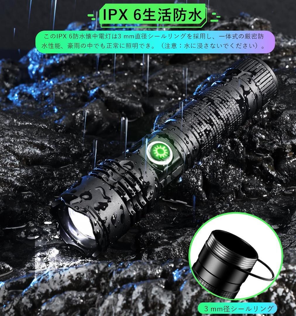 【IPX 6防水+堅牢】 このIPX 6防水懐中電灯は3 mm直径シールリングを採用し、一体式の厳密防水性能、豪雨の中でも正常に照明することができます。