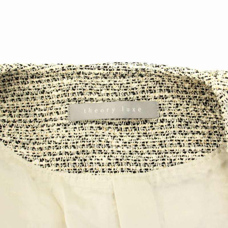 セオリーリュクス theory luxe LUNAR LINDI ツイード ノーカラーコート ミドル丈 トッパー 38 黒 ブラック 白 ホワイト 8109600