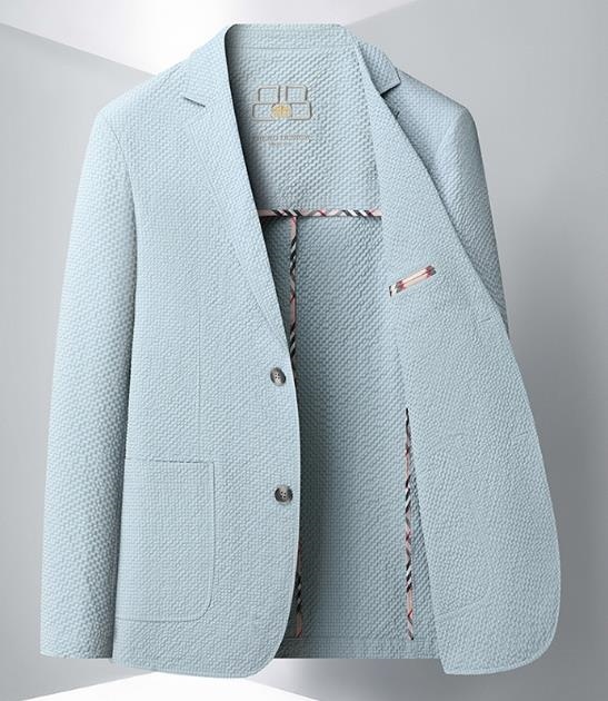 新品★未使用 サマージャケット シワ生地 メンズファション テーラードジャケット ブレザー 夏薄手通気 トップス【99126】ブルー L