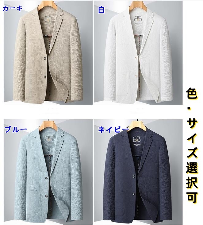 新品★未使用 サマージャケット シワ生地 メンズ テーラードジャケット ブレザー 夏薄手通気 トップス【99126】ブルー L