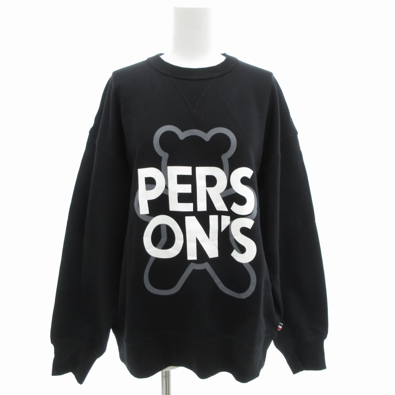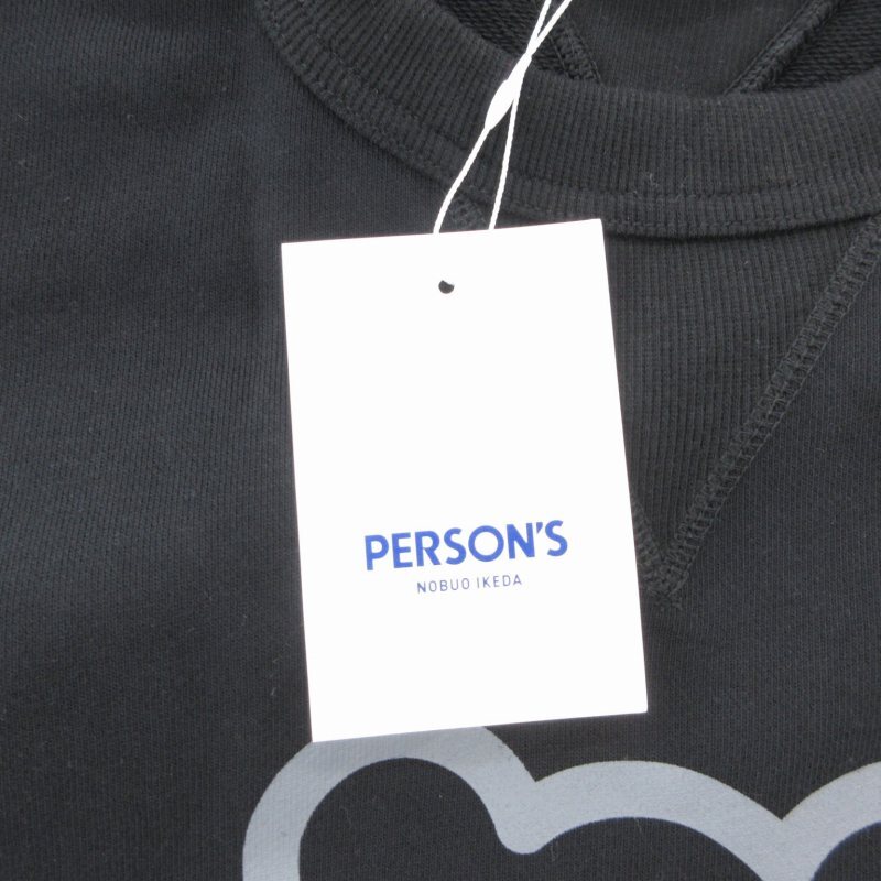 未使用品 パーソンズ PERSON'S トレーナー スウェット 長袖 クルーネック ロゴプリント S 黒 ブラック /GV レディース